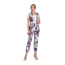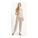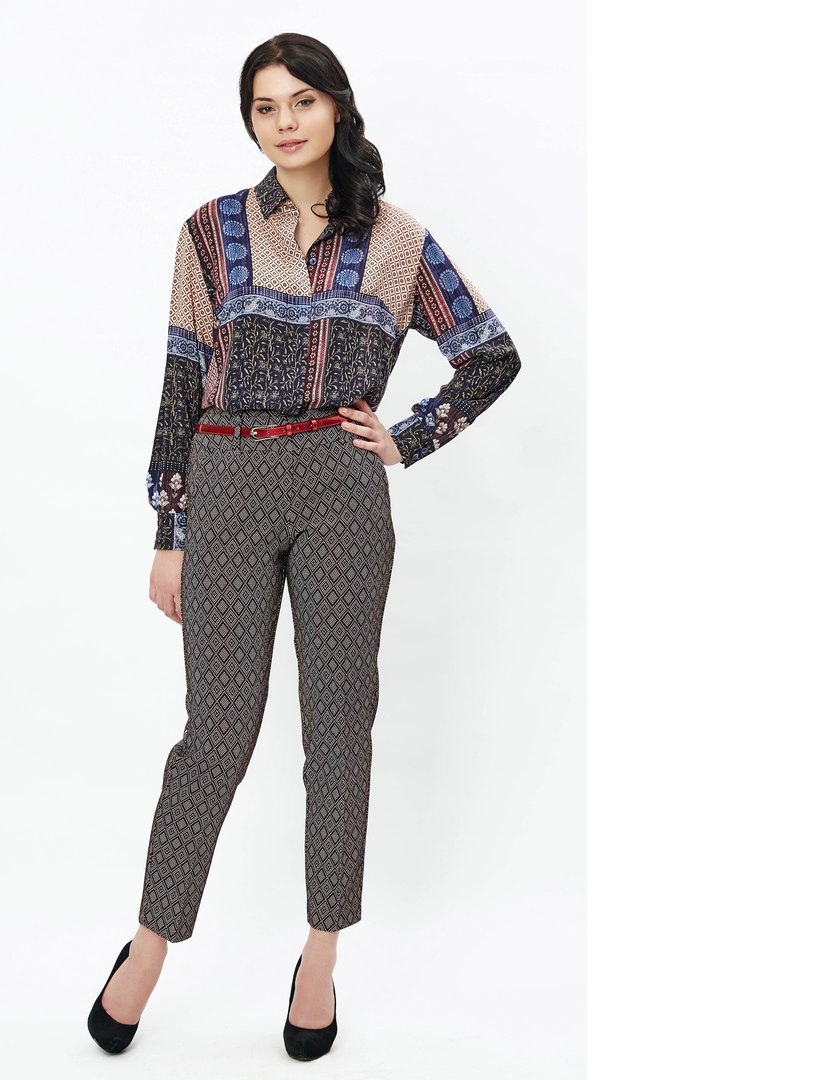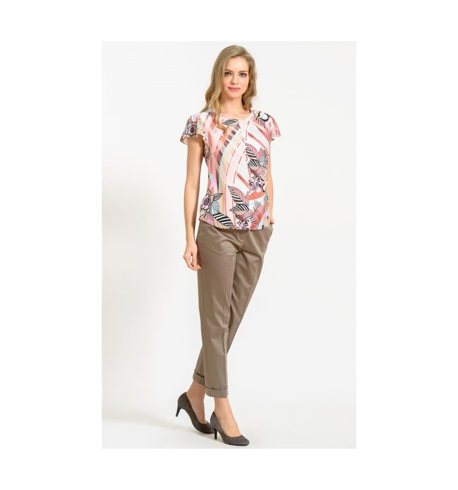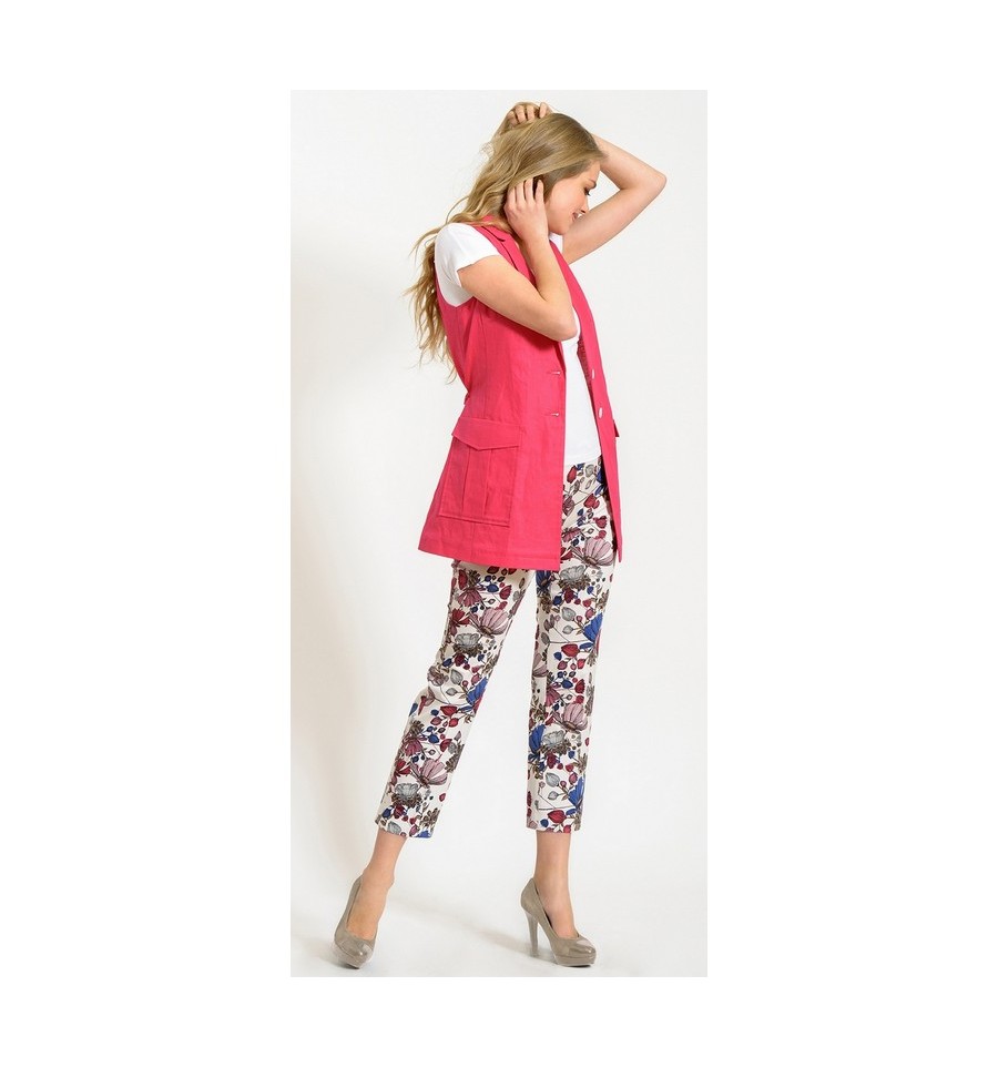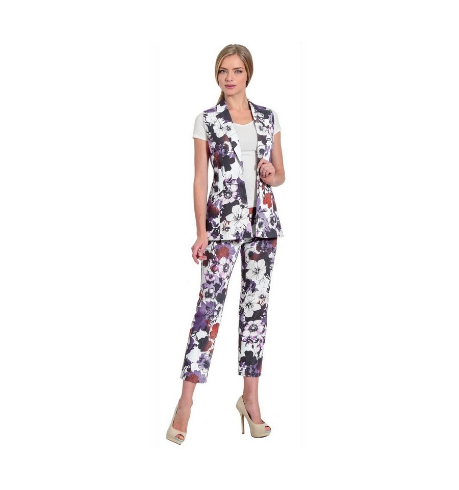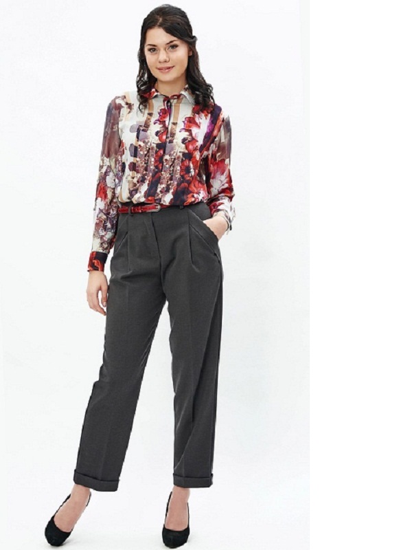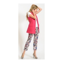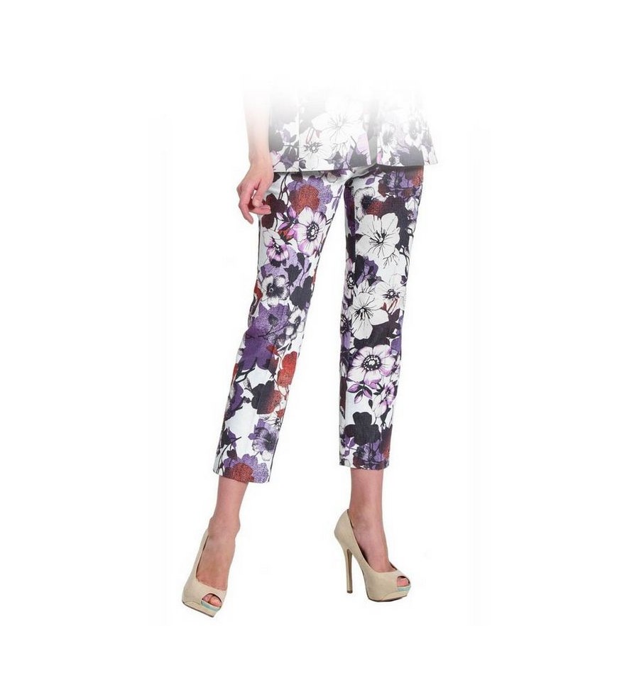 - The first is cropped trousers with floral motifs. They look good with jackets, cardigans, vests, T-shirts and T-shirts. From shoes are combined with ballet shoes, sneakers, and with high heels.