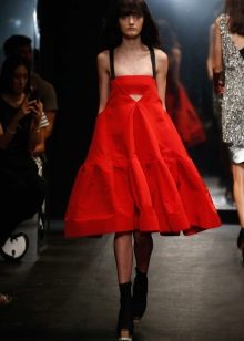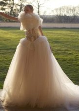 The magnificent dress looks quite self-sufficient, therefore does not need additional ornaments. This is a great option for skinny girls with a boy figure, because the voluminous skirt adds volume to the hips and makes the figure more feminine.