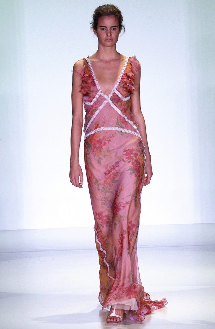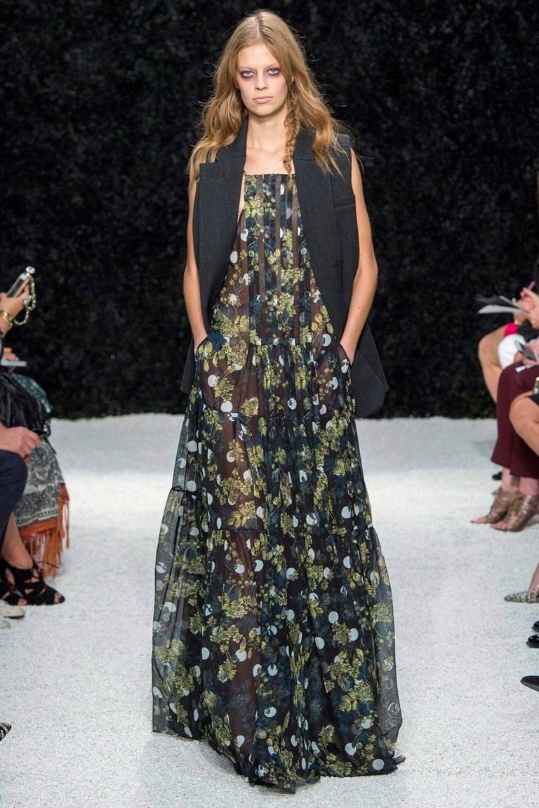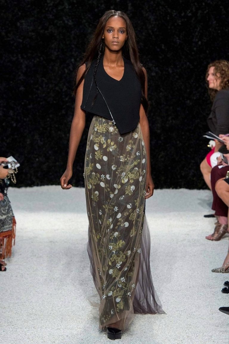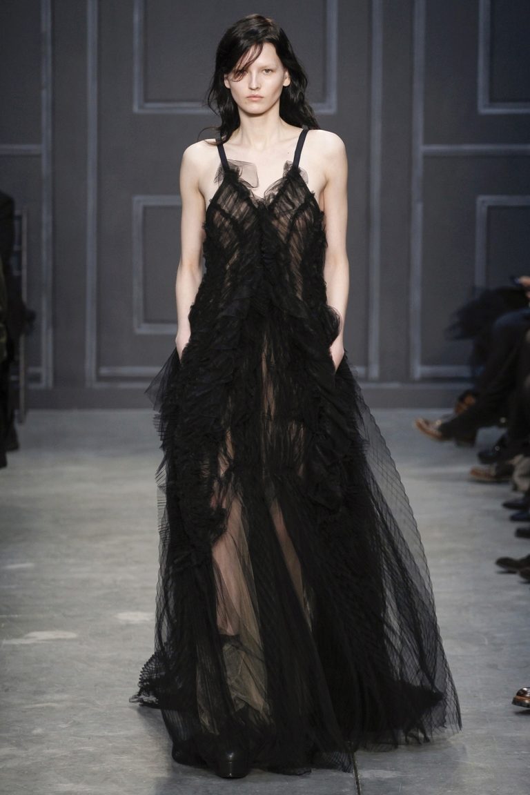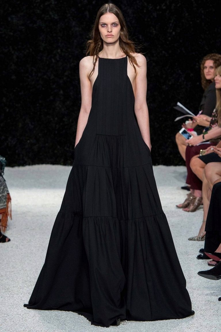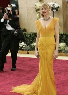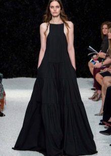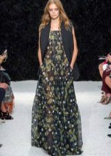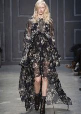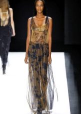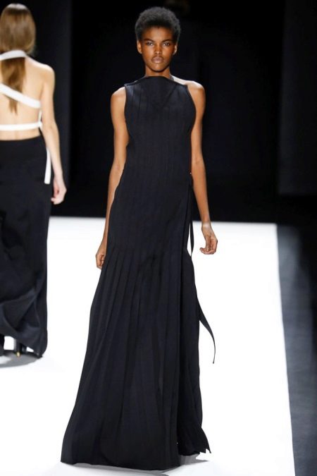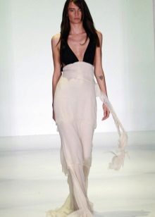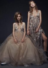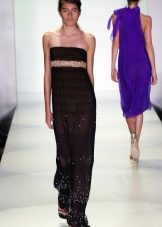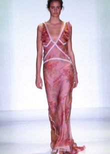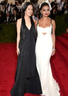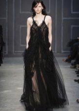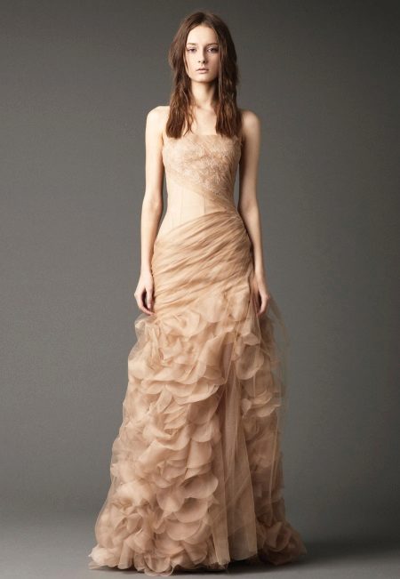 A long dress made of silk or chiffon is a great choice for a lookout. You can choose a model with a beautifully decorated top: drapery, ruffles, stones. Although recently, Vera Wong has been keeping to minimalism.