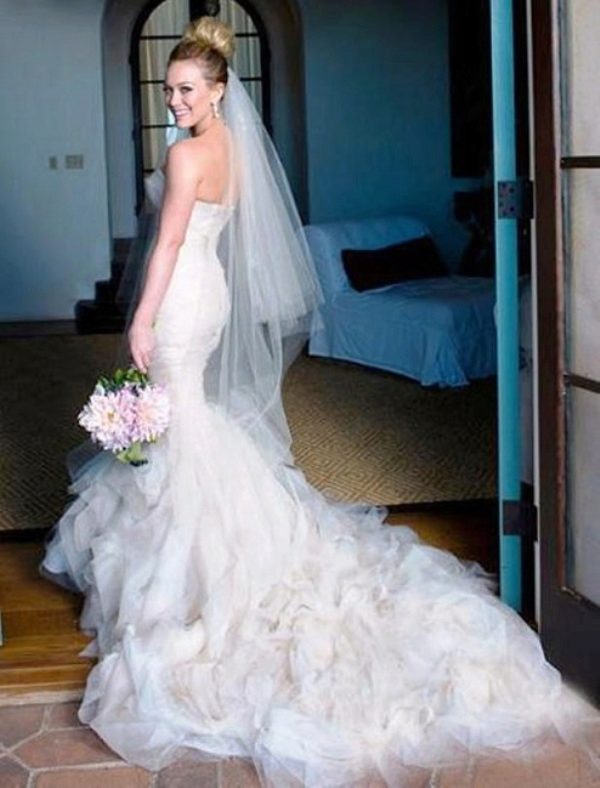 For example, Ivanka Trump had a delicate lace dress in classic American style. Hilary Duff, for her wedding ceremony, chose the seductive mermaid model. Kim Kardashian preferred a luxurious ball gown that accentuates the slim waist.