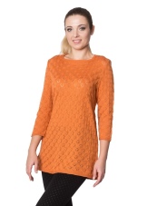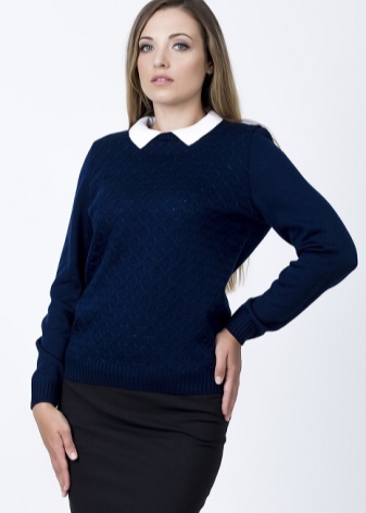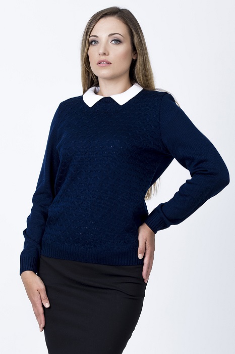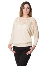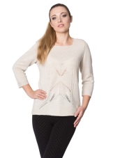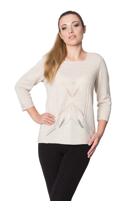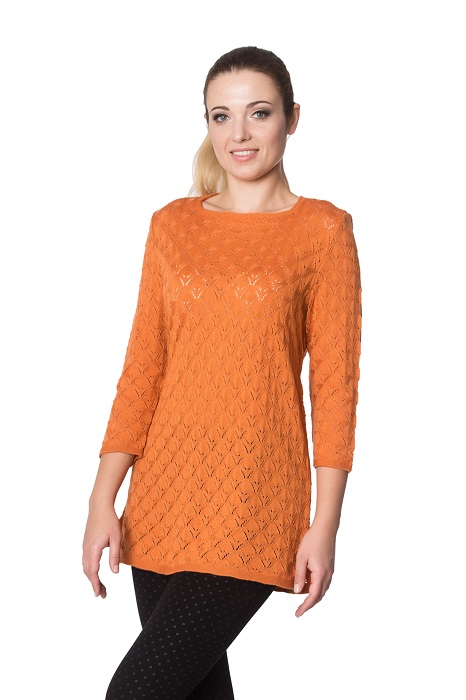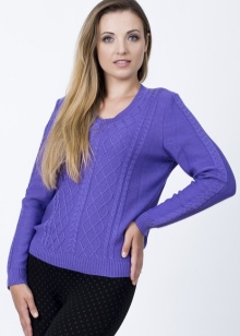 - Jumper. Light, openwork models are made of blended yarn. The neck can be round, square, V-shaped, made in the form of a collar or in another form. Sleeve - short, long, ¾. Jumpers are made in a light or dense knitting, can be monophonic, multi-colored, decorated with prints.
