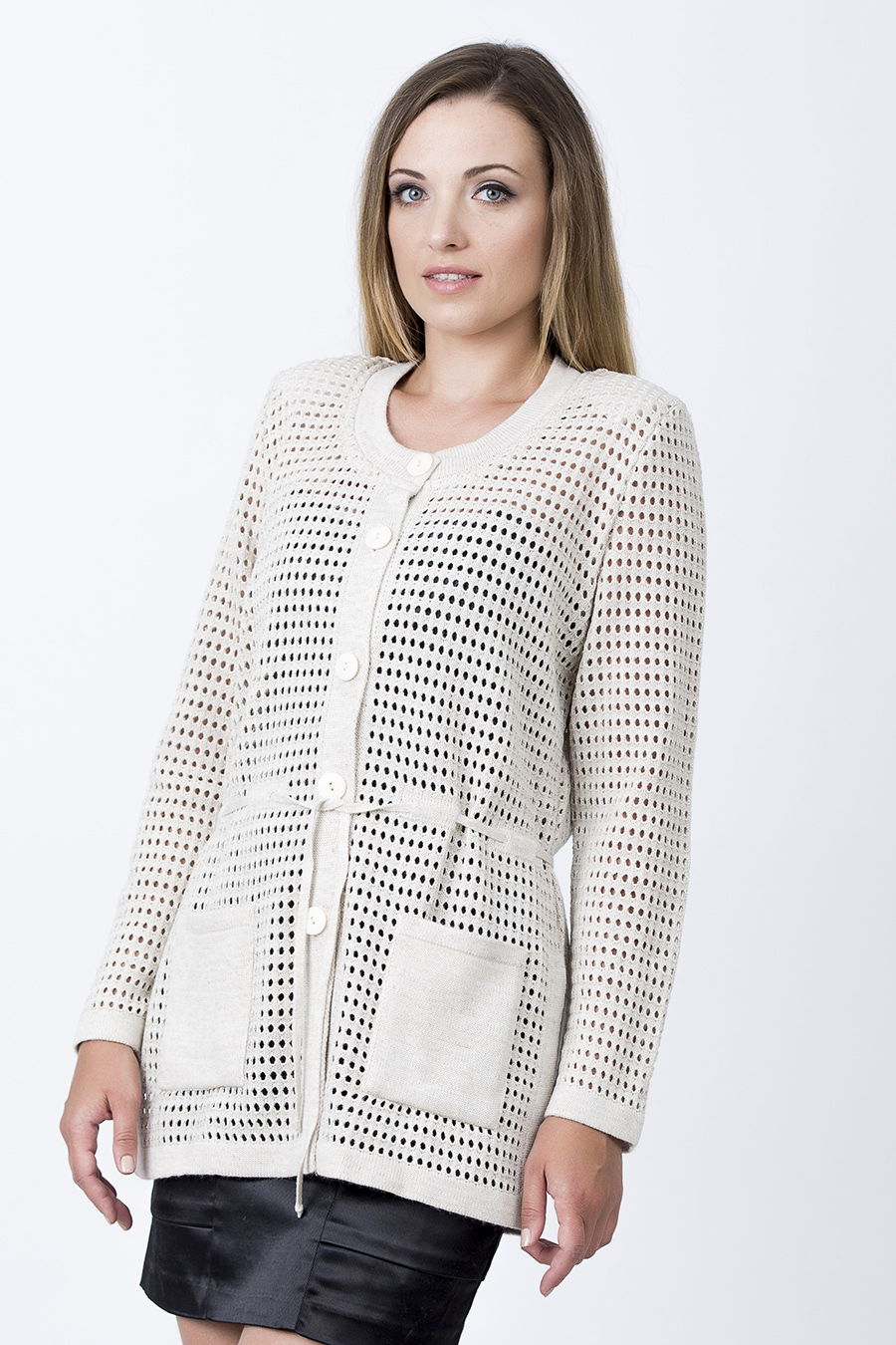 Warm jackets, cardigans and jumpers perfectly retain heat, allowing the skin to breathe without creating a greenhouse effect. In light, openwork blouses, it is comfortable and convenient even on the hottest day.