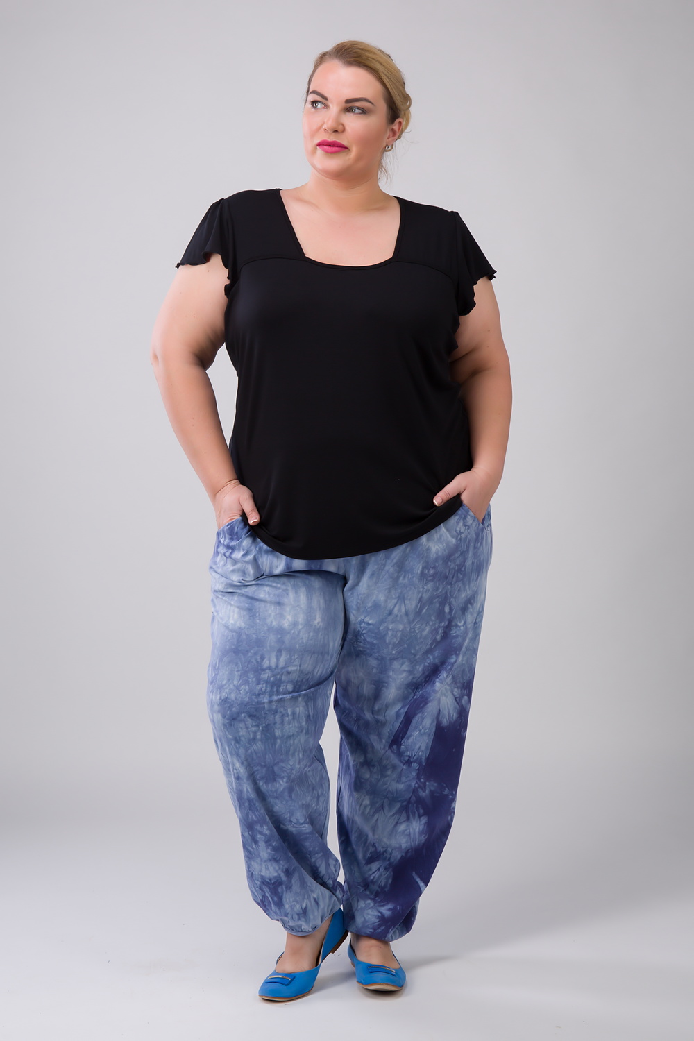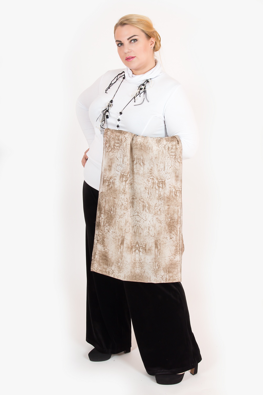 Products of the Tula Jersey trademark are produced in a wide size range. Special attention is paid to large size clothing. Luxurious ladies of 56, 58 and even 62 sizes of clothes can easily choose for themselves a suitable version of clothing for every day, a beautiful set for work, a hoody for playing sports.