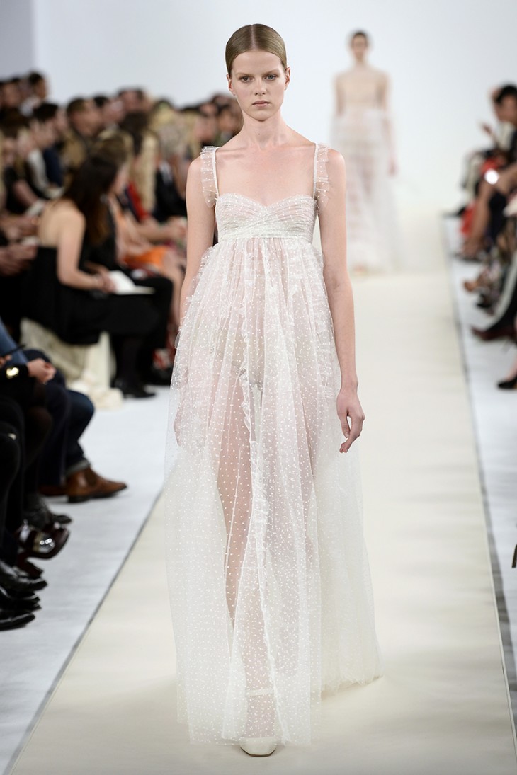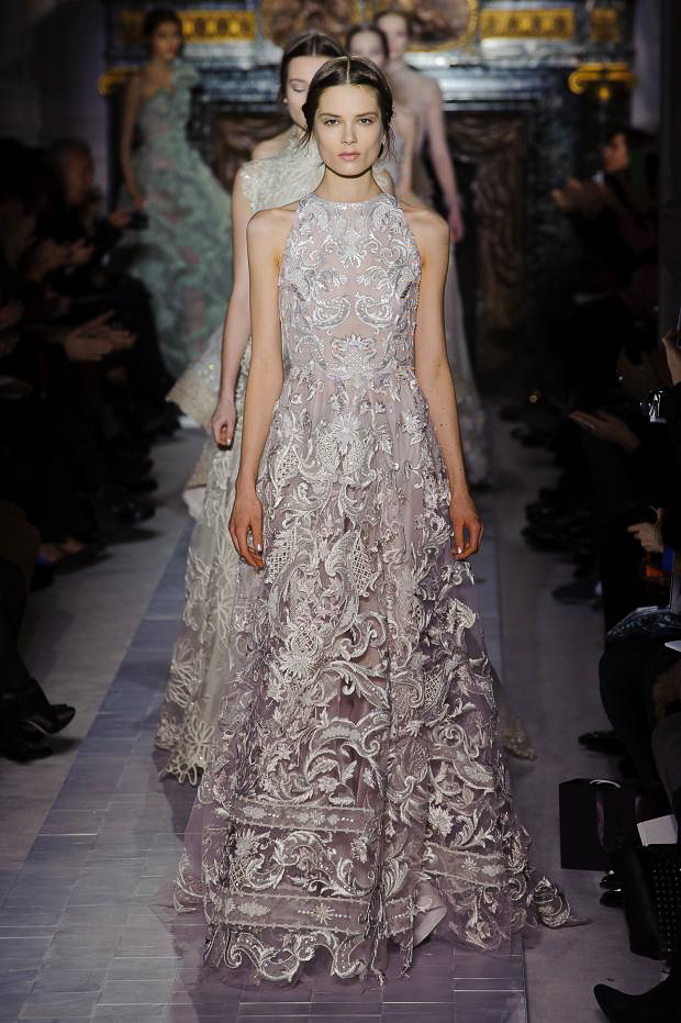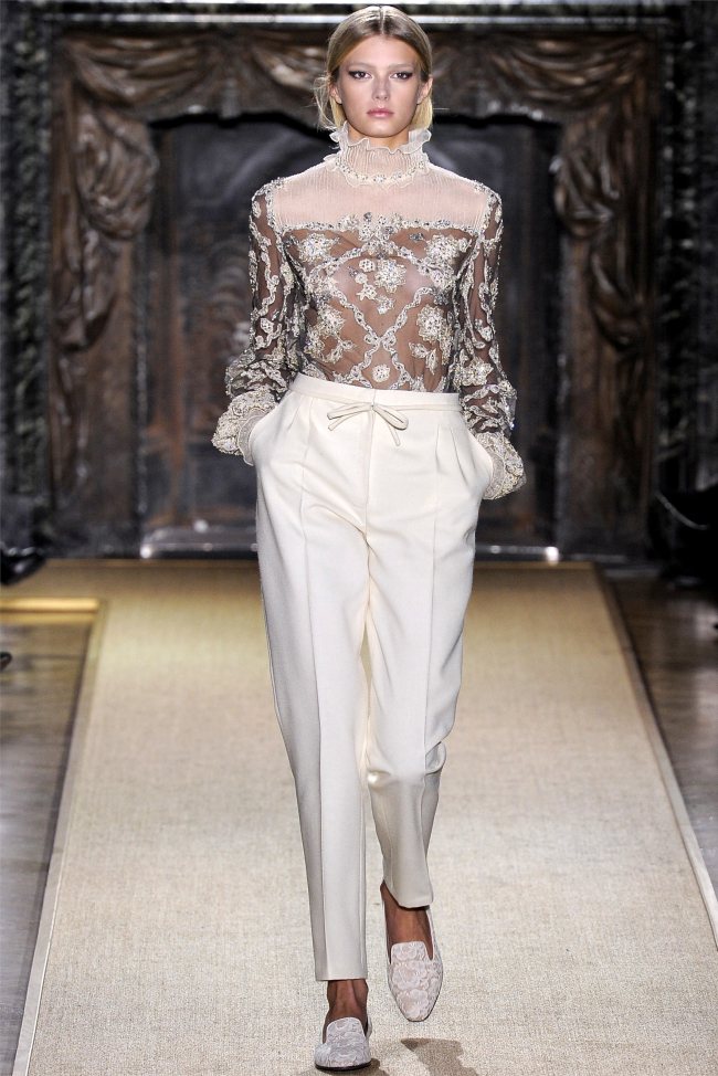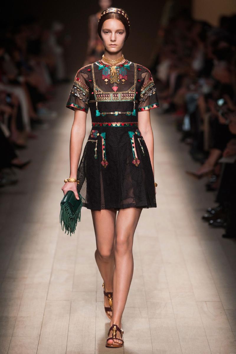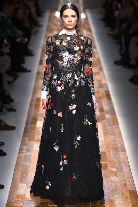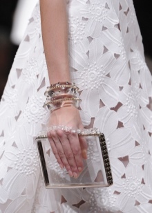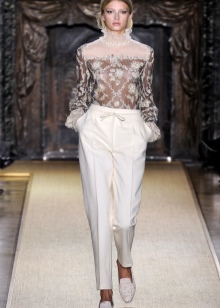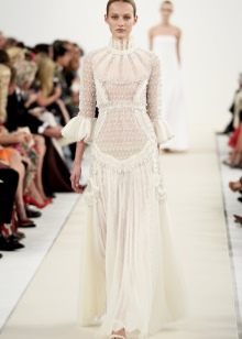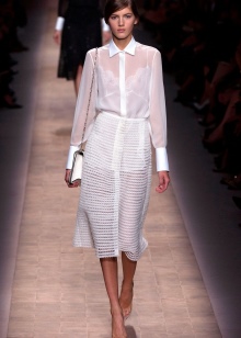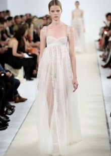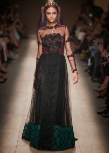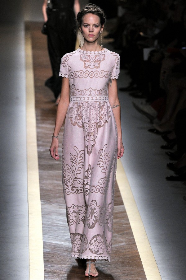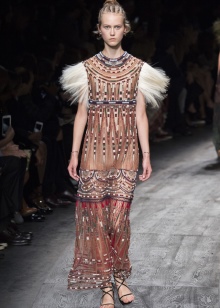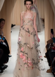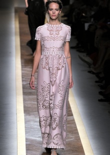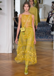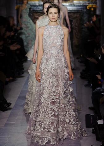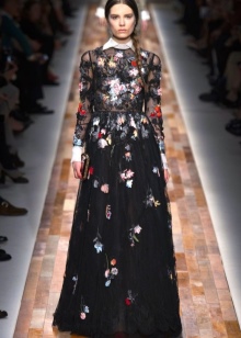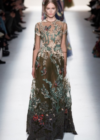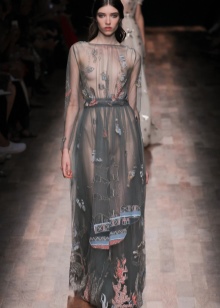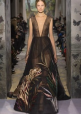 In addition, in the collections of Valentino can be traced the frequent use of mesh fabrics and materials with a large embroidered pattern.