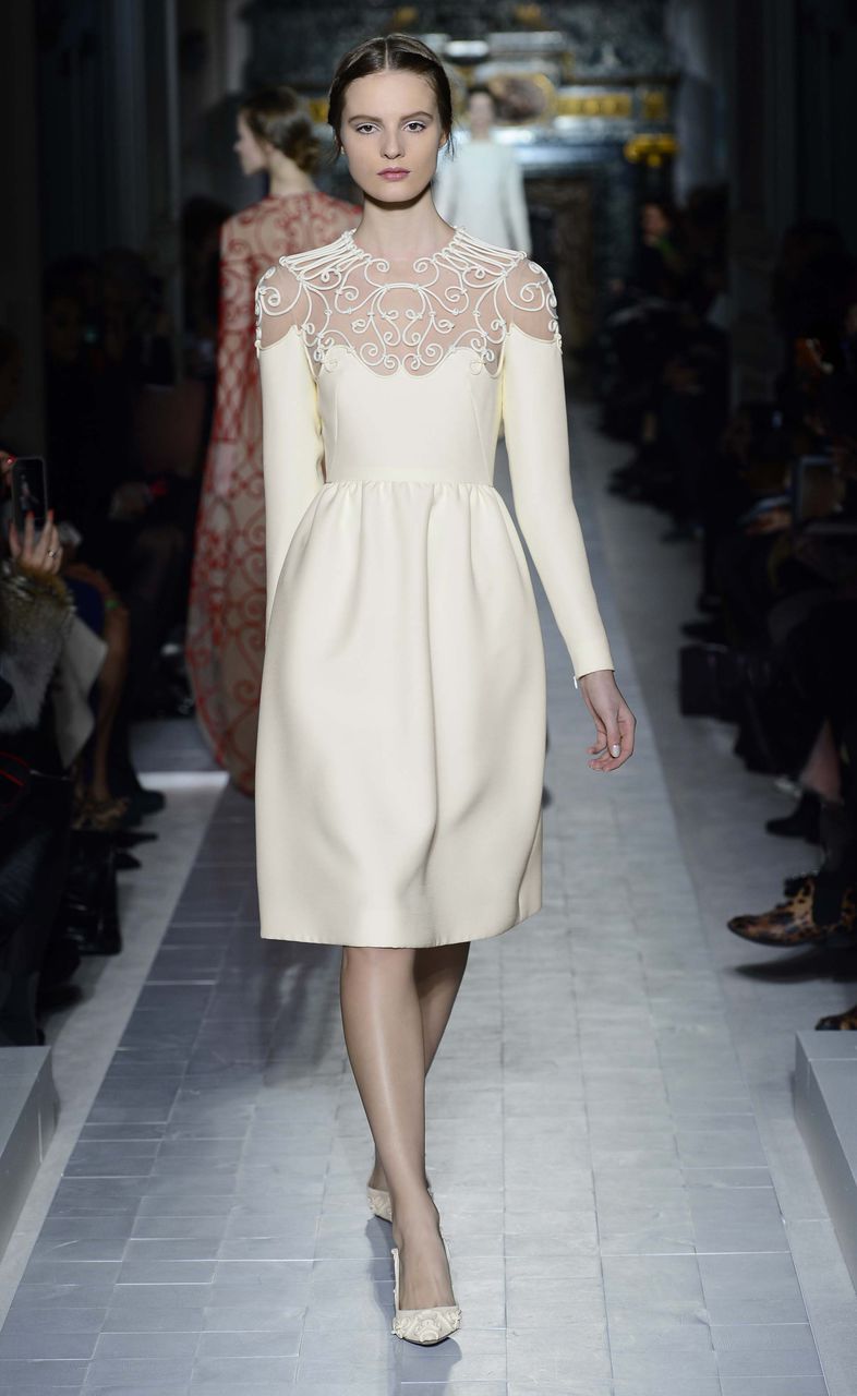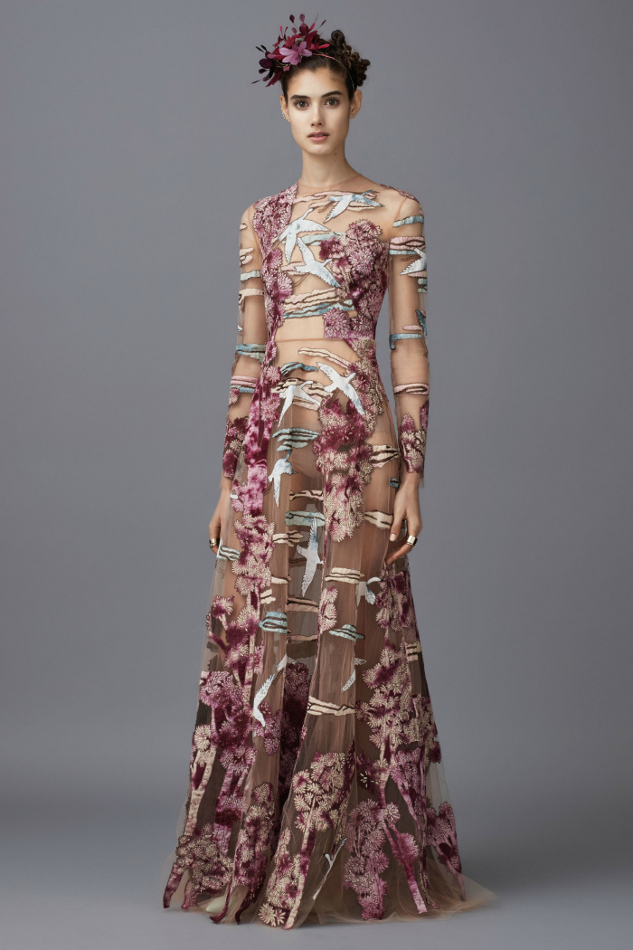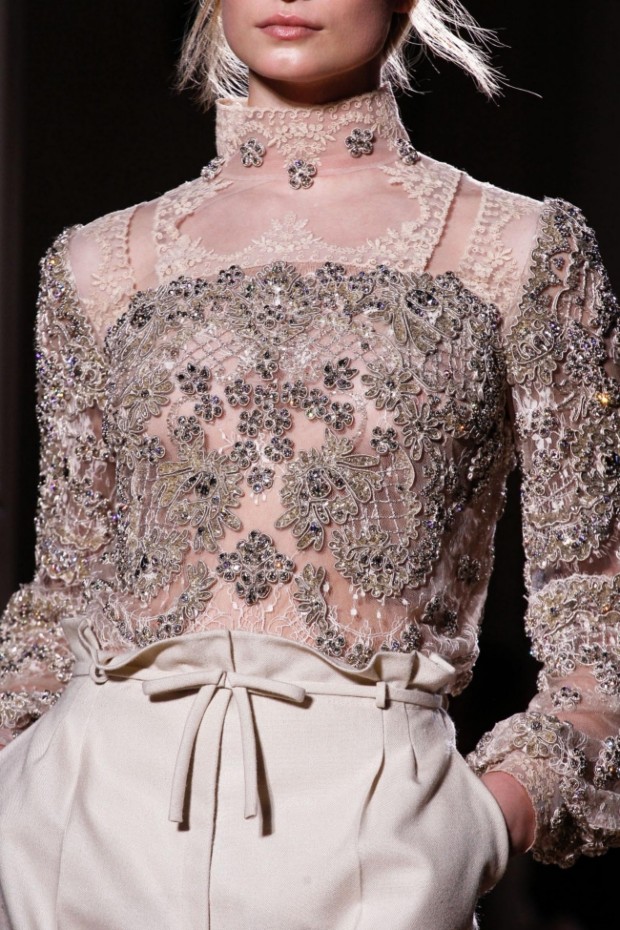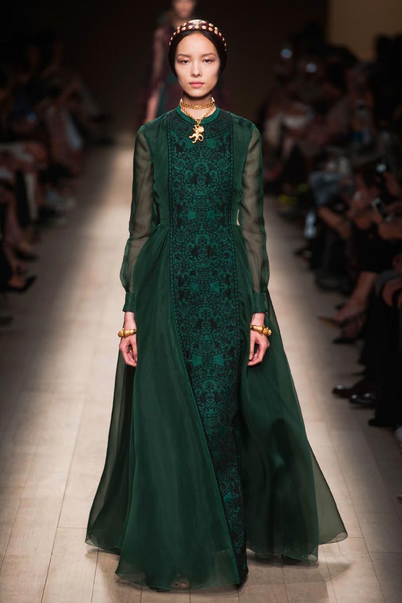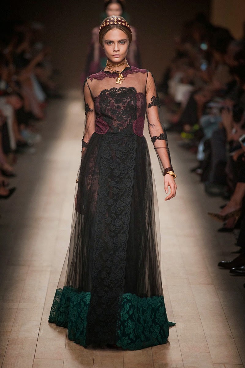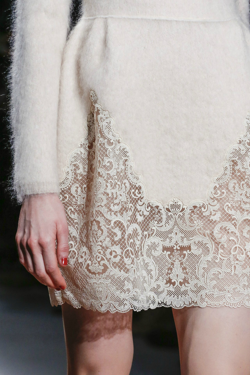 In addition, in the collections of Valentino can be traced the frequent use of mesh fabrics and materials with a large embroidered pattern.