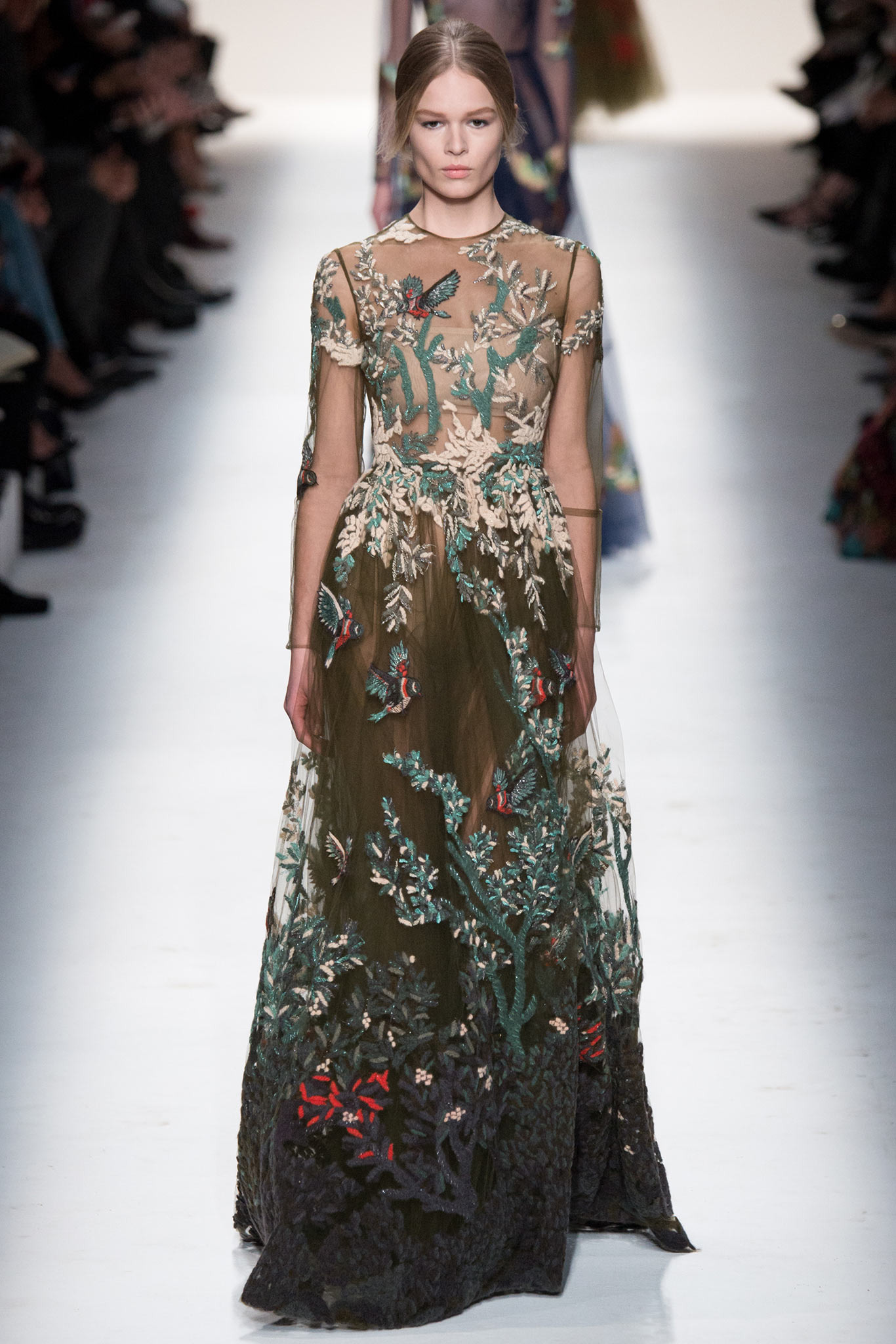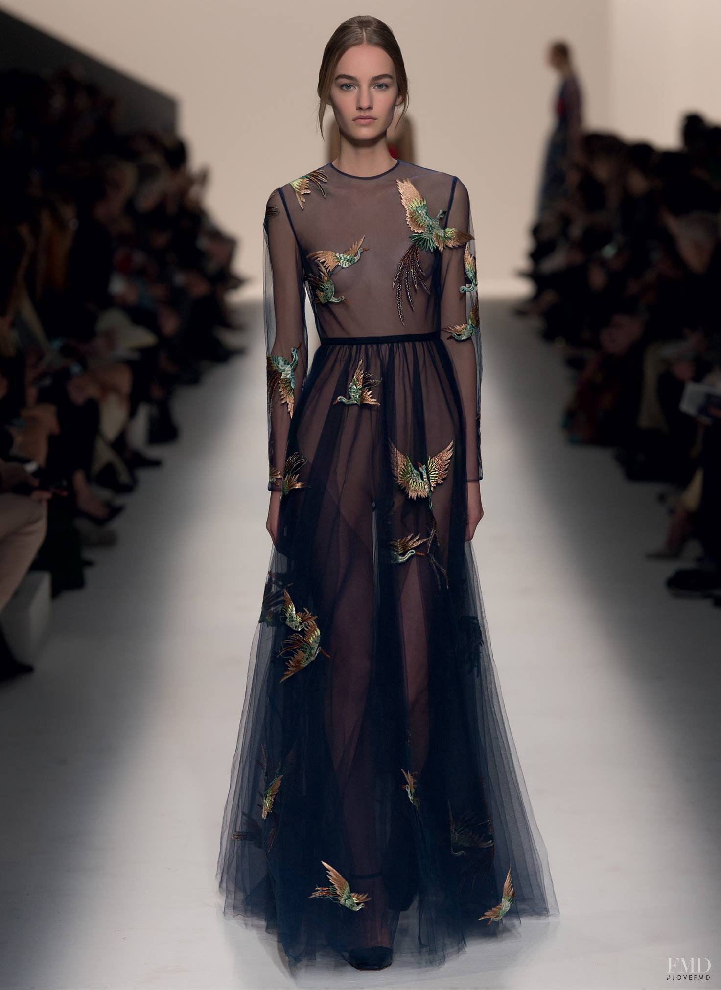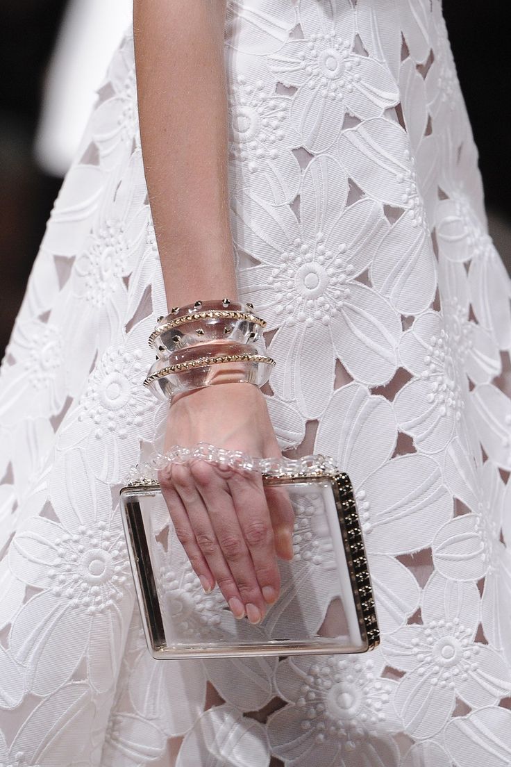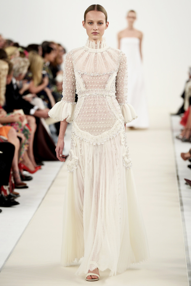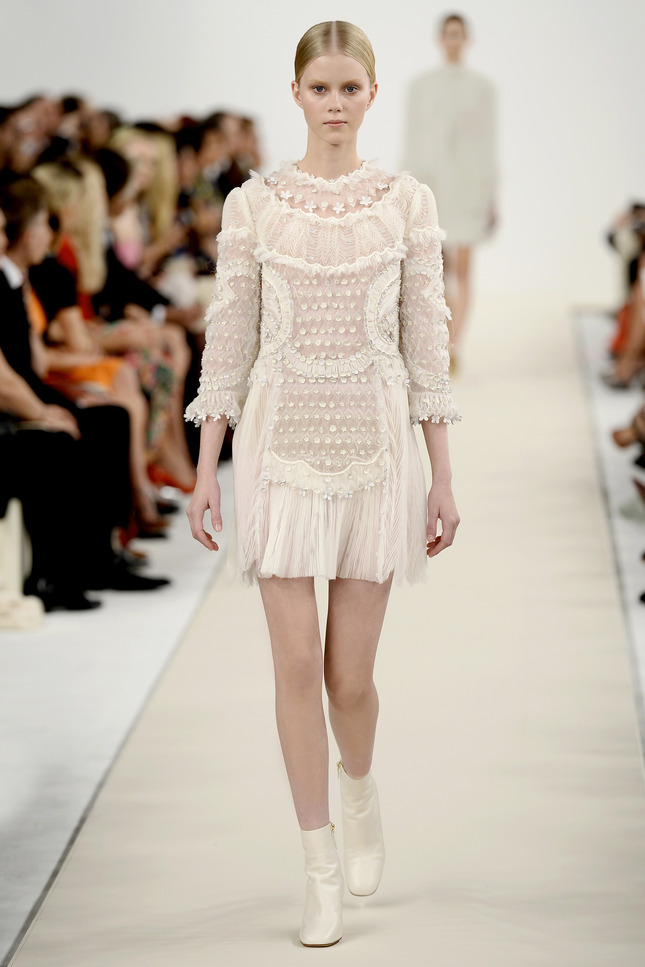 In addition, in the collections of Valentino can be traced the frequent use of mesh fabrics and materials with a large embroidered pattern.