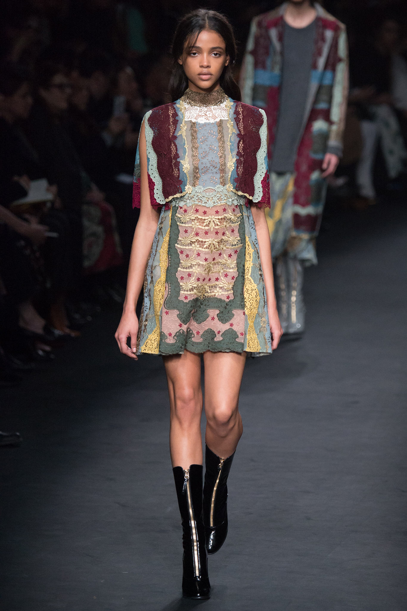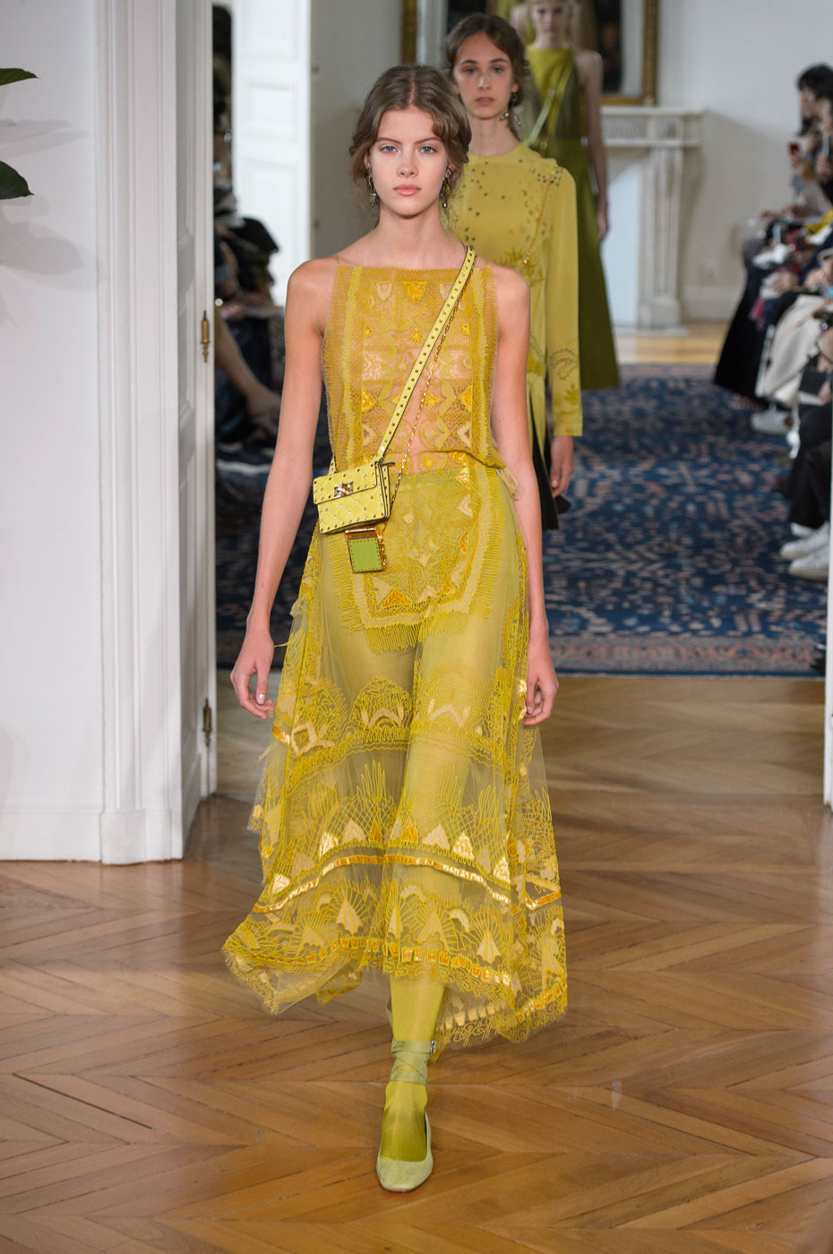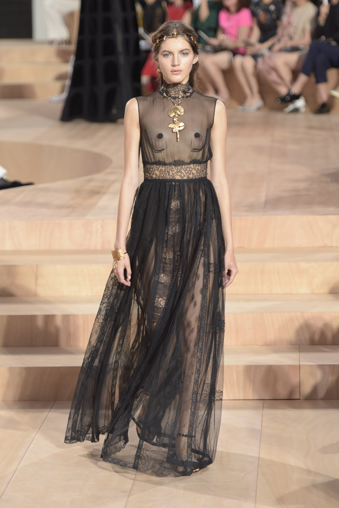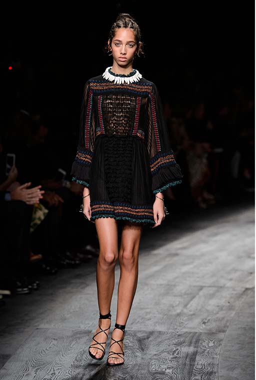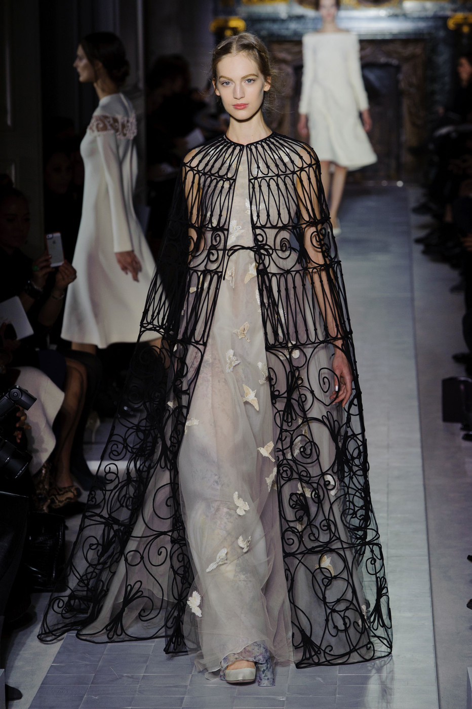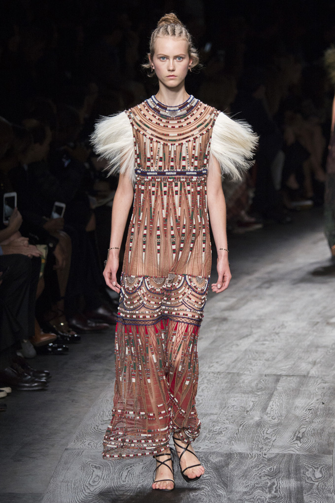 In addition, in the collections of Valentino can be traced the frequent use of mesh fabrics and materials with a large embroidered pattern.
