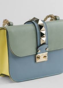 Beautifully colored multicolored bags, the color of which is a kind of geometric print, consisting of interwoven stripes, squares and rectangles of different sizes.