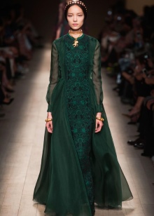 Speaking in general about the line of evening dresses, it should be noted that mainly the models are presented in the form of a maxi length and most of them have a long sleeve. Some of them have a rather frank appearance, and some, on the contrary, look more restrained and chaste.