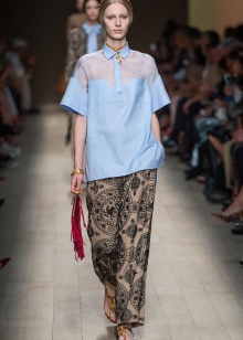 For the manufacture of shirts used thick cotton and linen, depending on the model. And elegant blouses with voluminous sleeves are sewn of fine silk, satin, chiffon and viscose. The products are light, airy and incredibly feminine.