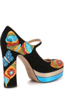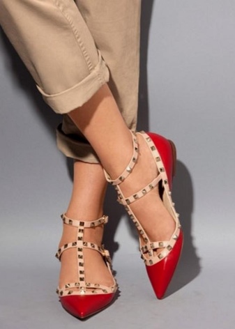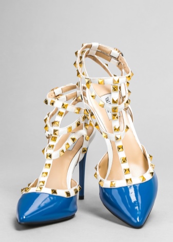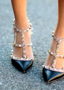 But the most popular and most widely regarded is the model of shoes with spikes. Decorative spikes are located on double T-shaped straps, which are attached to the buckle in the ankle area. These shoes have a pointed toe and a stiletto heel, the length of which is chosen in accordance with personal wishes.