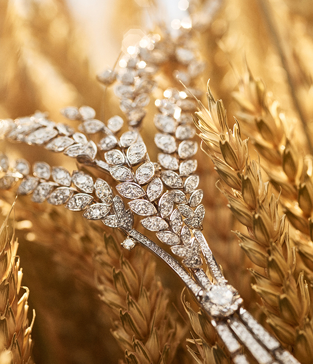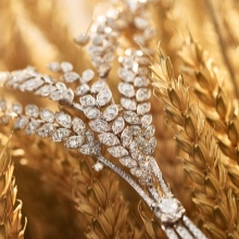 This collection was one of the first to represent expensive items made of precious metals and stones. There were stunning brooches in the form of feathers made of white gold. They were complemented by shining diamonds.