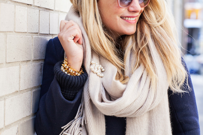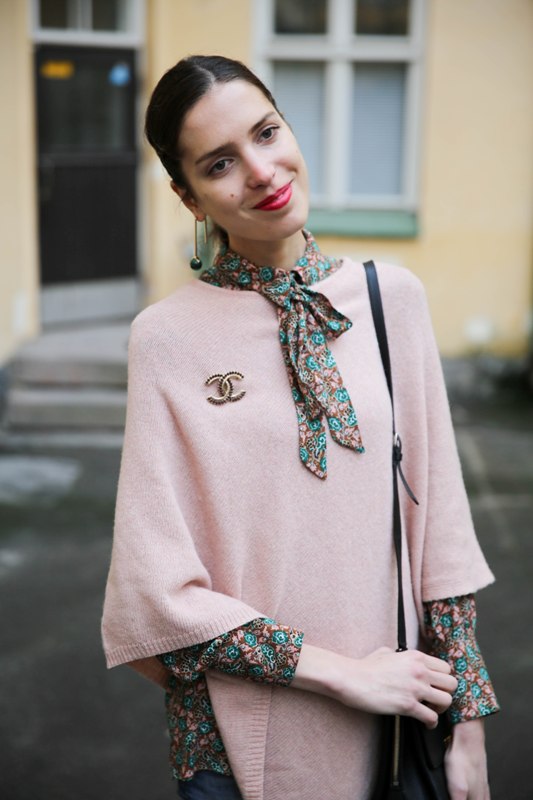 Fashionistas like to hook brooches to other accessories: beads or bracelets. Such an addition can effectively transform even the most ordinary thing.