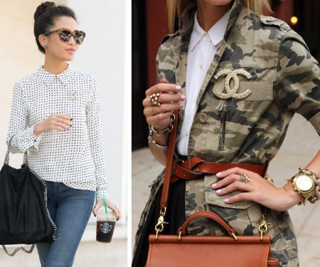Today, small branded brooches are known all over the world and are wildly popular. This flirty product was very fond of Coco Chanel. Today, the famous brand allocates special lines for this cute accessory.