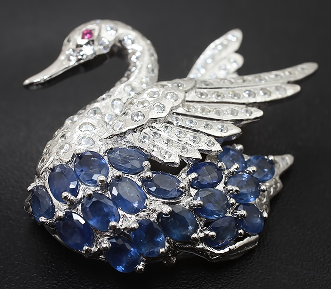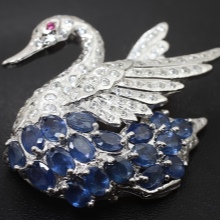 Especially richly look brooches with sapphire. The combination of silver and blue is very popular this season, so this is a good choice.