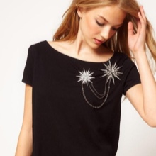 A party is also not a reason to refuse a beautiful brooch. An interesting model, richly decorated with stones, will be an excellent occasion to attract attention. It will fit under an evening dress, most importantly, follow the rules of fastening. For traditional dresses with a very shallow neckline, attach the brooch to the shoulder, but if the neckline is seductive, fasten the product at its very bottom. Asymmetry involves wearing jewelry on the part that is closed, and open shoulders - in the middle of the bodice.