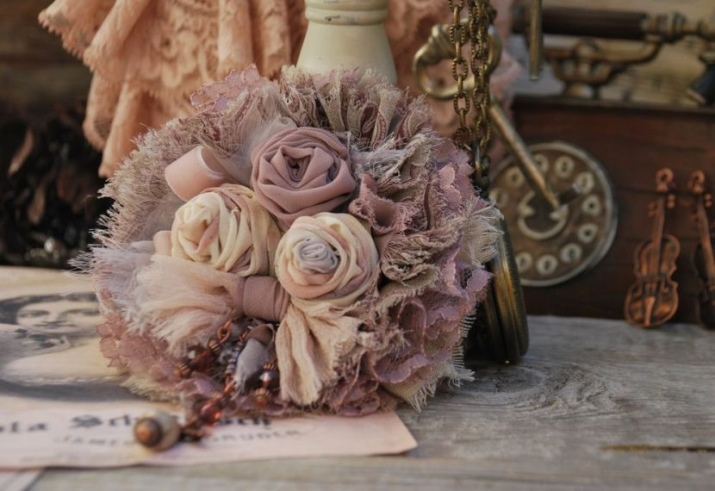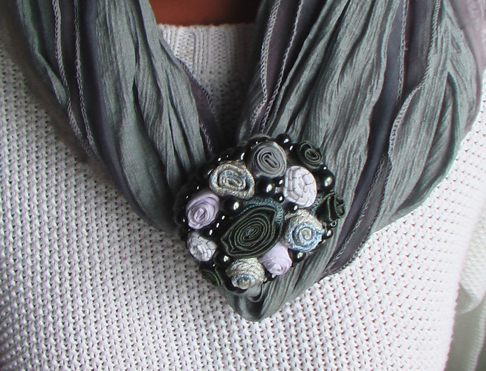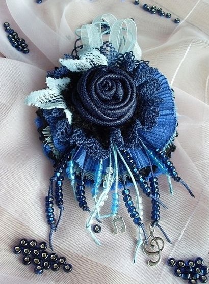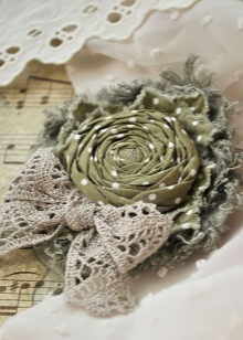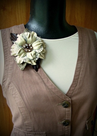 Beautiful brooches made of textiles perfectly harmonize with long skirts to the floor, summer air sundresses, colorful trousers. If the decoration is a neutral shade, it can be successfully combined with any color in clothing. But when the brooch is bright, choose the top of a contrasting shade so that the accessory does not merge with the clothes.