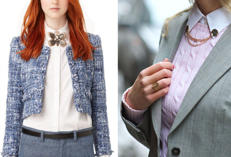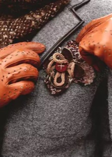 As for the color solutions, either bright colors or warm shades of brown, beige, and pastel colors prevail. The same trends can be observed in jewelry, especially in brooches.
