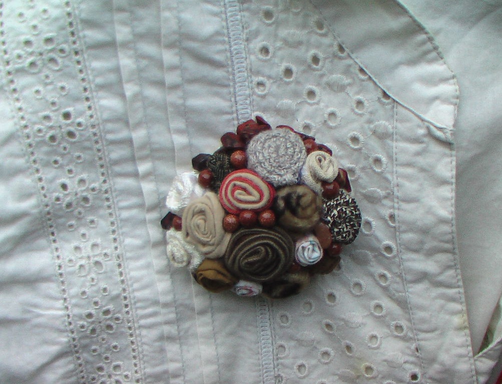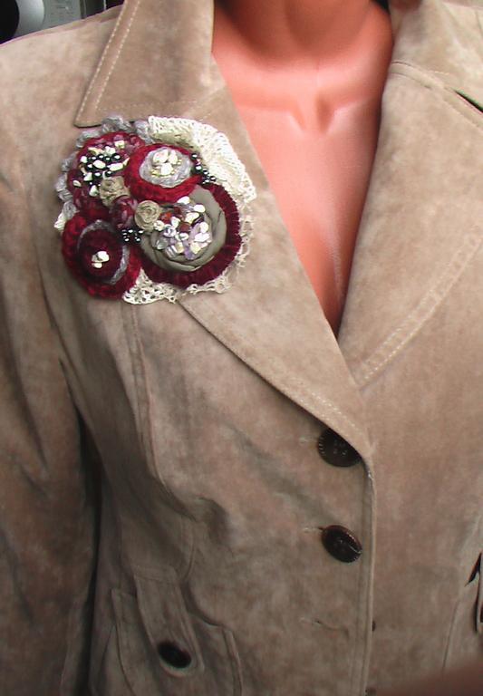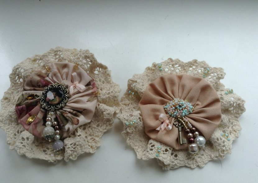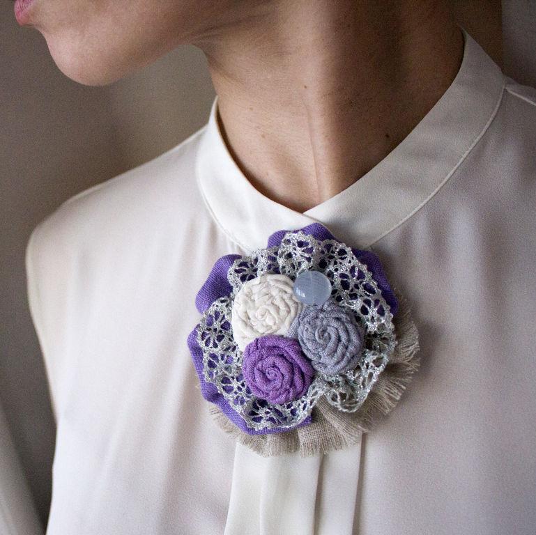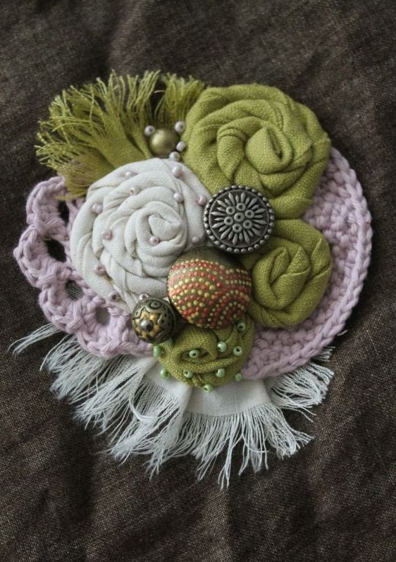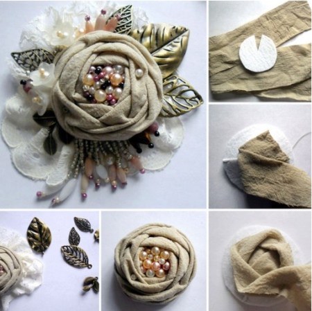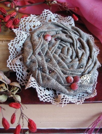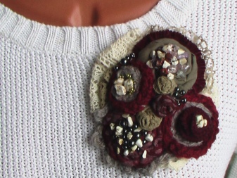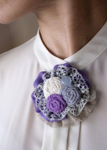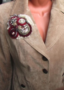 Textile brooches are the easiest to make yourself. To do this, use different types of textiles - cotton, burlap, suede, lace, leather.