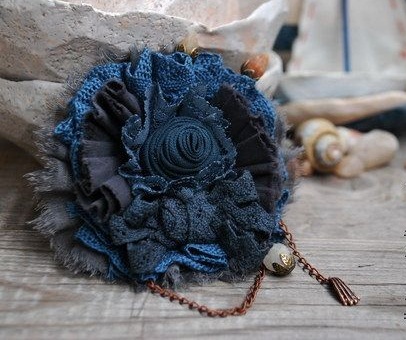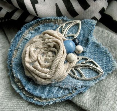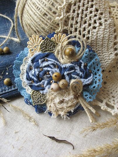 First of all, denim is the prerogative of urban style and street casual. But what about those who like to combine boho style clothing and denim elements? A good solution is to purchase or make an amazing and bulky denim brooch.