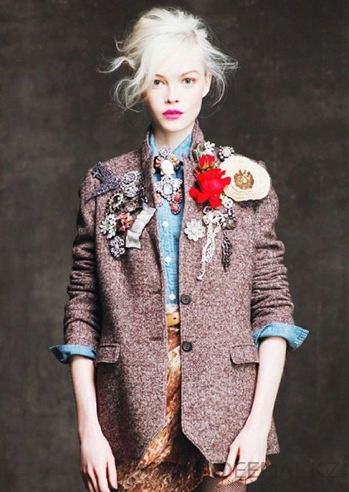 The style of "Boho" is famous first of all for the fact that it combines completely non-combinable things. Therefore, you should never be afraid to look pretentious, even if a very large brooch has become your choice.