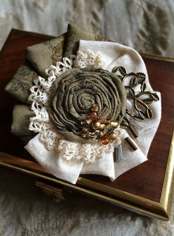 There are a lot of materials that are used to make brooches in the Boho style. It can be silk fabrics, and burlap, and lace. Often all these elements can be found in every home, and make a brooch by yourself. If there is no desire to create, then a good solution would be to order a finished product from a good master.