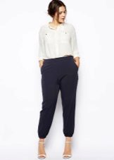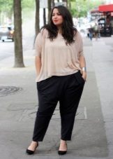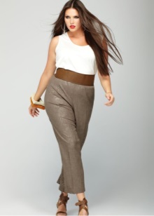 Fluffy girls look great in straight trousers with a detachable waist. However, this option will be considered conservative and is suitable for lovers of the classics.
