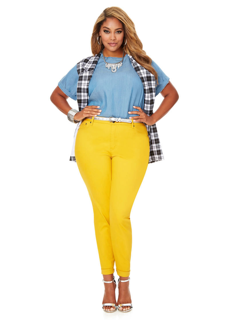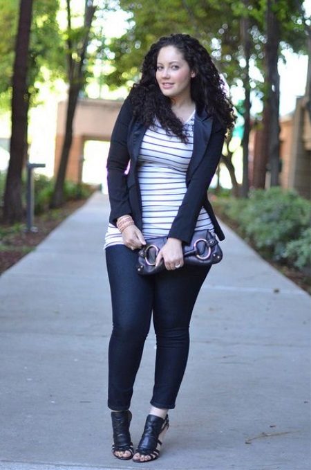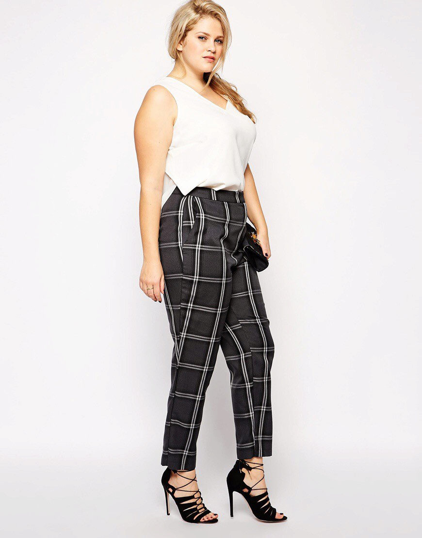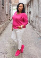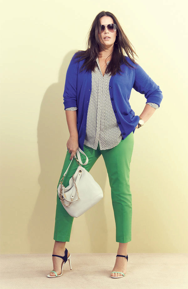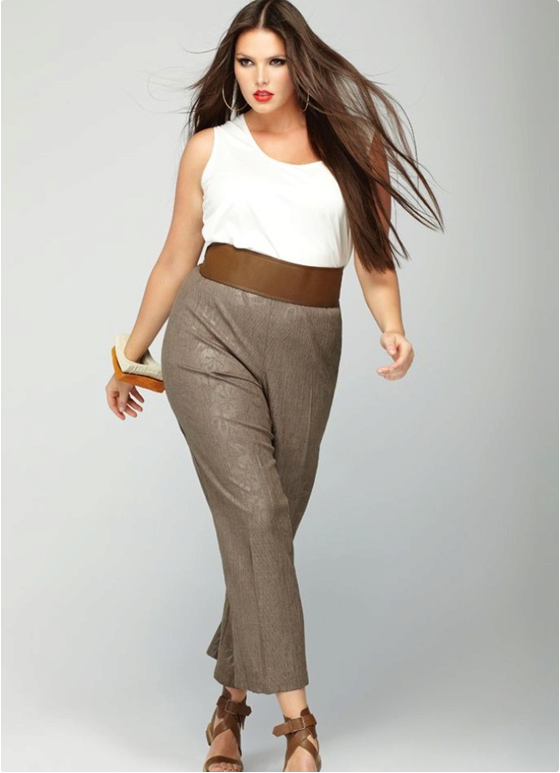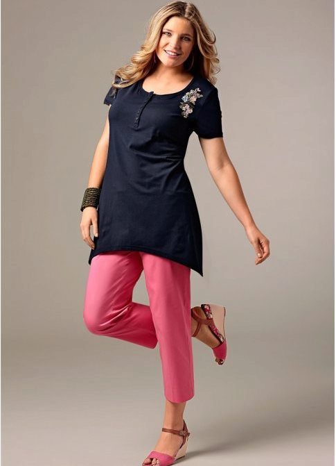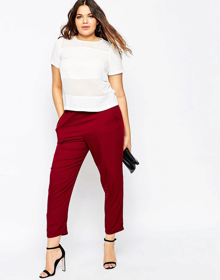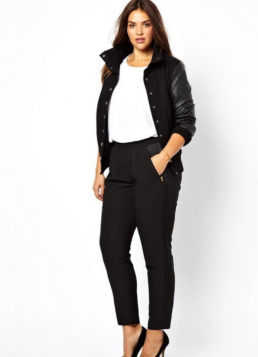 Most full ladies are embarrassed to wear tight pants, believing that it will fill them. Fashion stylists, on the contrary, are sure that extra weight is not a hindrance for creating a fashionable image and recommend women with curvaceous forms not to be afraid to try something new and create their own style with different models and colors.