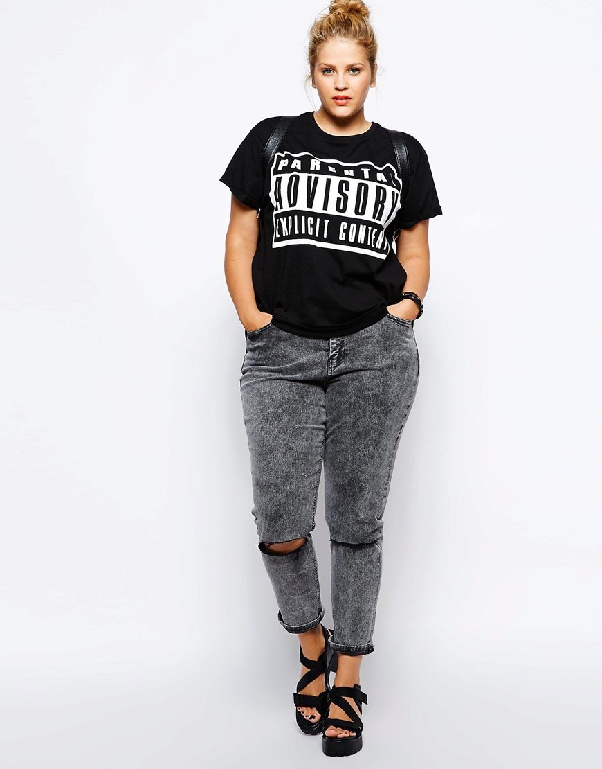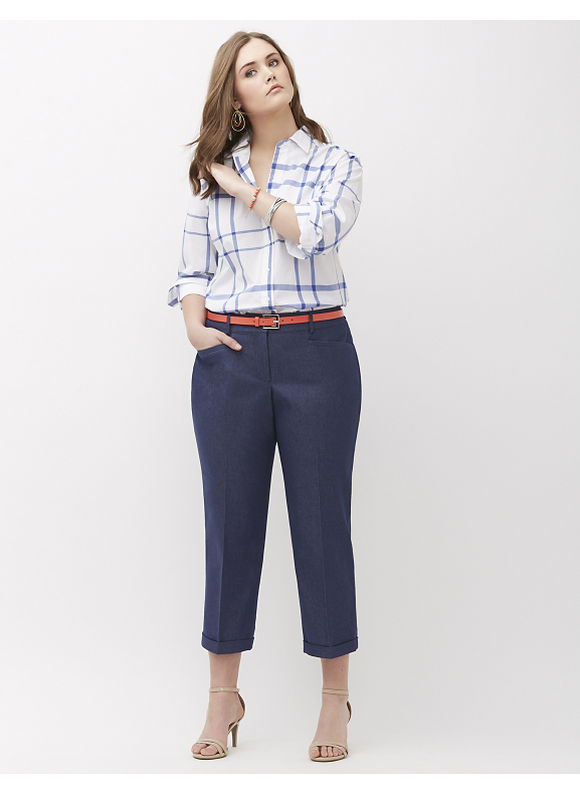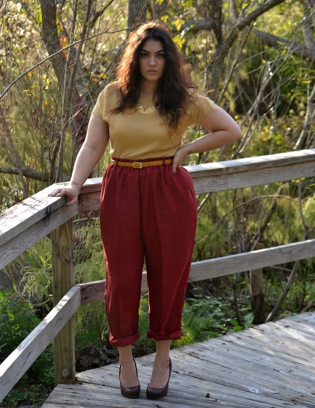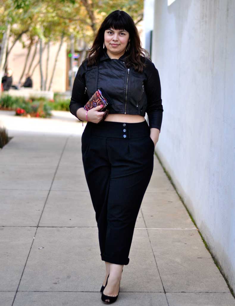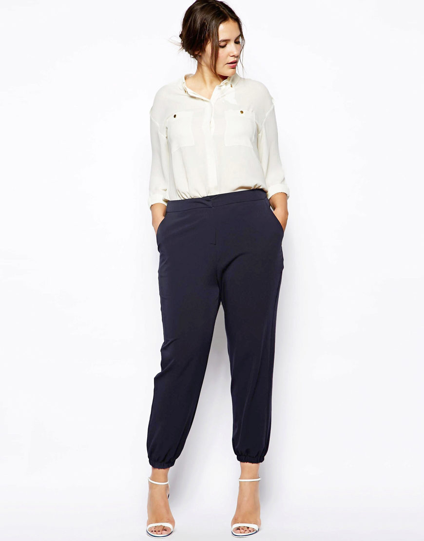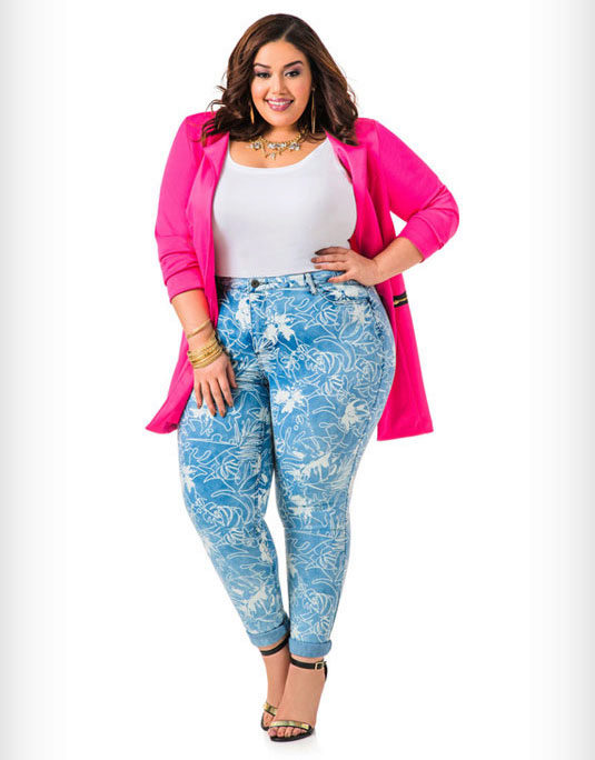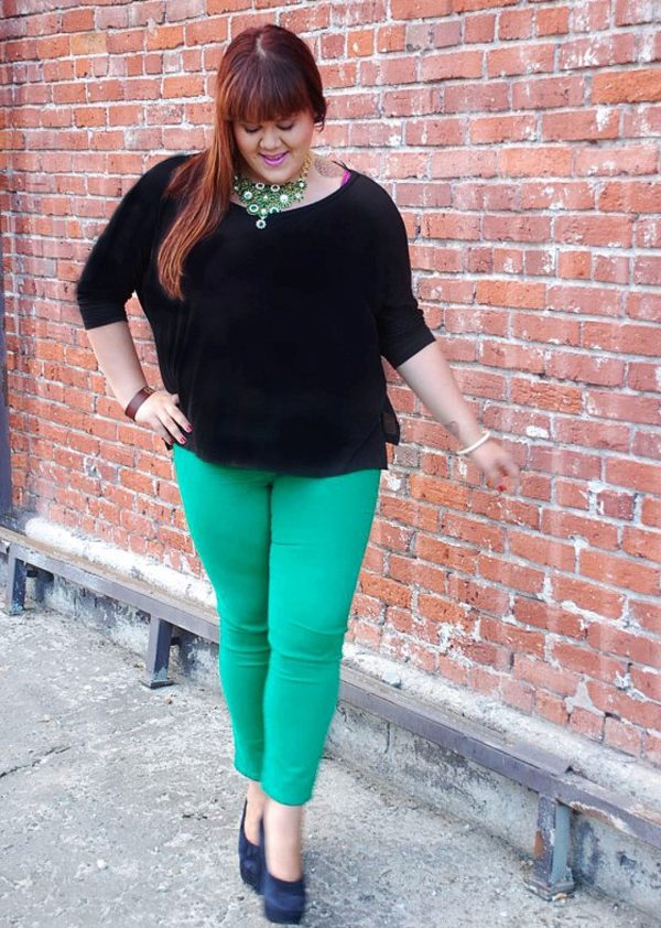 Most full ladies are embarrassed to wear tight pants, believing that it will fill them. Fashion stylists, on the contrary, are sure that extra weight is not a hindrance for creating a fashionable image and recommend women with curvaceous forms not to be afraid to try something new and create their own style with different models and colors.