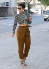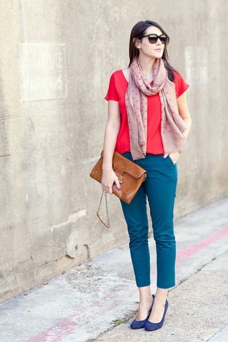 Accessories will always help diversify your image. To the bright trousers fit big bags of bright colors, they will make your image truly light and rich. Jewelry is often chosen by mood, a good solution would be to use jewelry or jewelry.