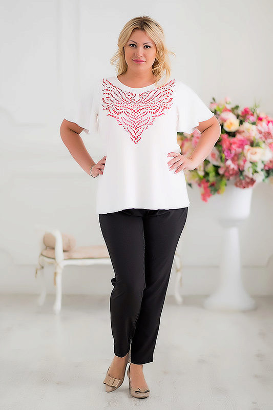 Full ladies should think about the combination of wide cropped trousers with blouses with a deep neckline, which will certainly divert attention from a full bottom.