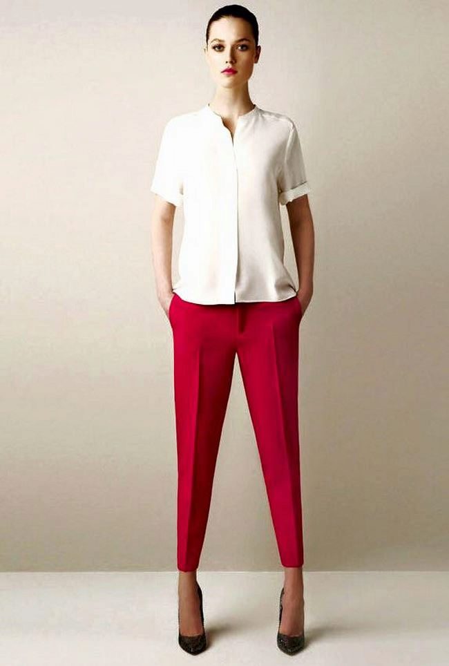 As for summer trousers, models of pink, orange and green shades are a good choice. If you like pants with prints, look at the narrow strip, cage and colors, as well as various geometric patterns.