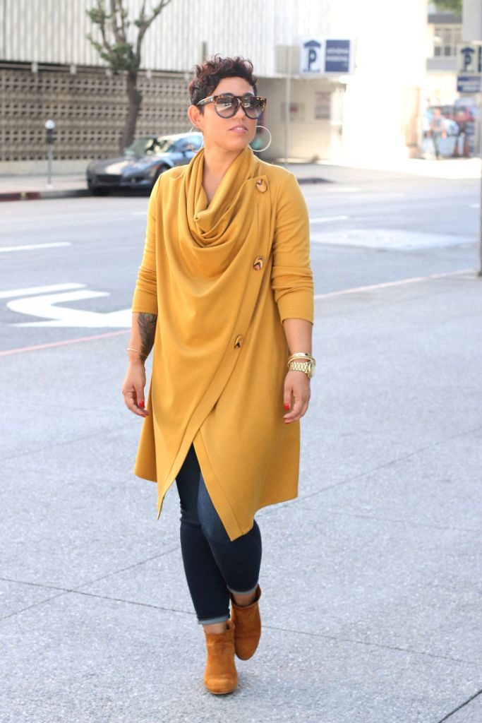 This season, full girls should look at dark and gray colors and shades, a good choice of fabric will be tweed and wool.