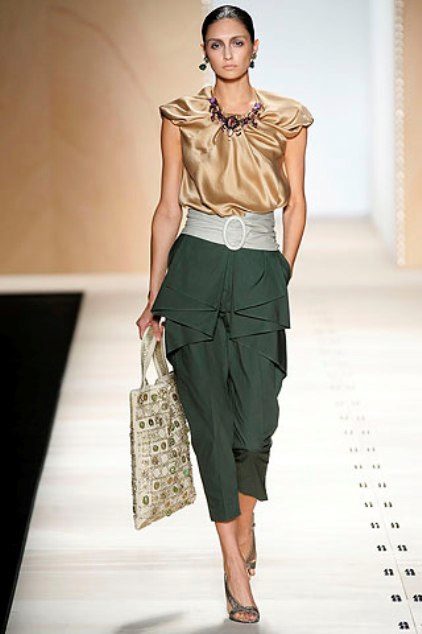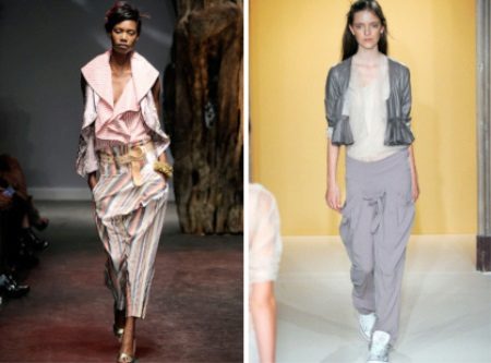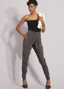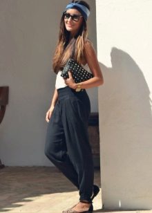 - Modern - this trousers Aladdin, which are based on a classic cut, however, they are complemented by several new elements. For example, the volume is present only in the hips, on the rest of the legs the pants are tapered.