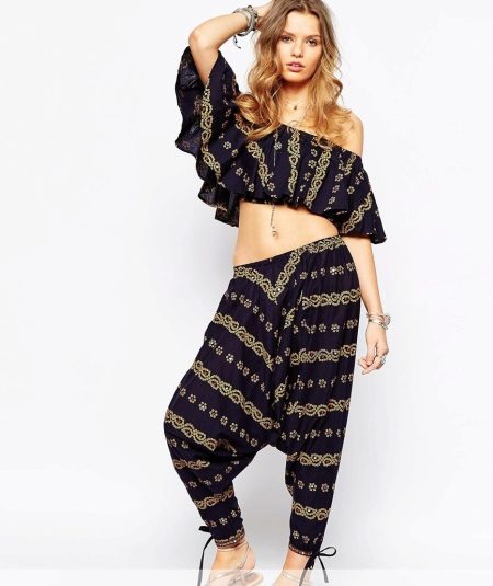 Not all girls are familiar with such an extraordinary piece of clothing as Alladin trousers. These pants came to us from the East. Once it seemed all exotic, and now these pants can be met on the girls in everyday life.