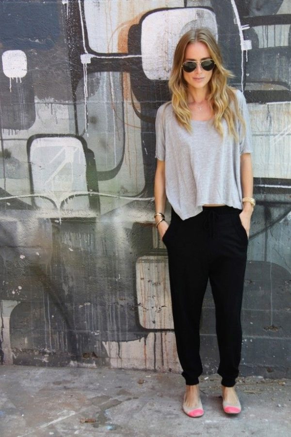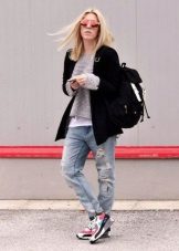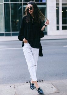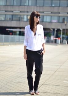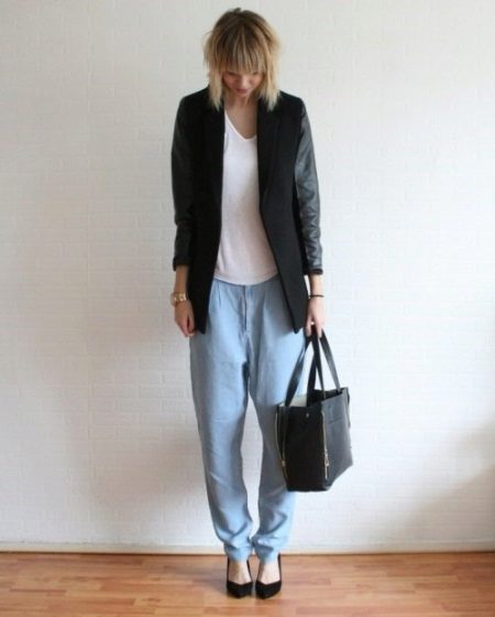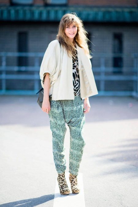 Stylists and fashion lovers have long learned how to combine buggy pants with clothing in a variety of styles. Not only baggy T-shirts, sweatshirts and sneakers can make a set with this type of pants. Stylish and elegant things can also be a great pair for a buggy.