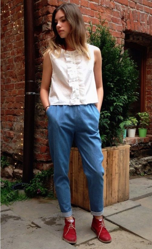 As a visual example of how to combine buggy pants with other things, we have compiled for you a collection of interesting and vivid images. You can repeat your bow or come up with your own outfit, inspired by our ideas.