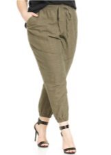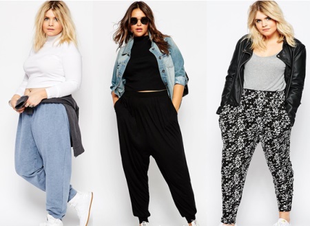 Pants, bananas - this is a real find for girls with curvaceous. Despite the rather voluminous, heavy silhouette, they perfectly hide extra pounds in the hips.