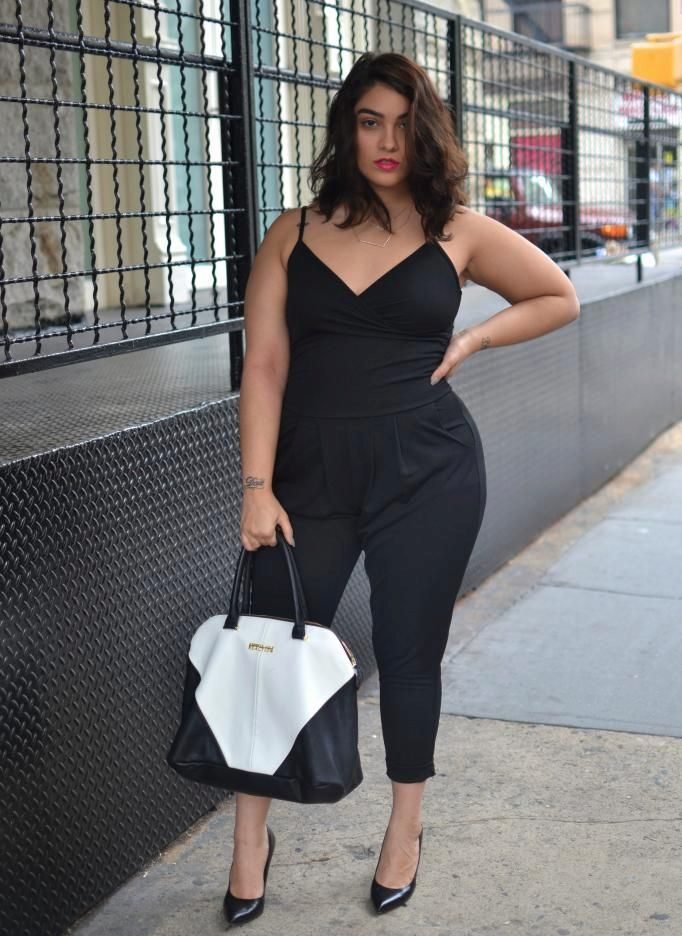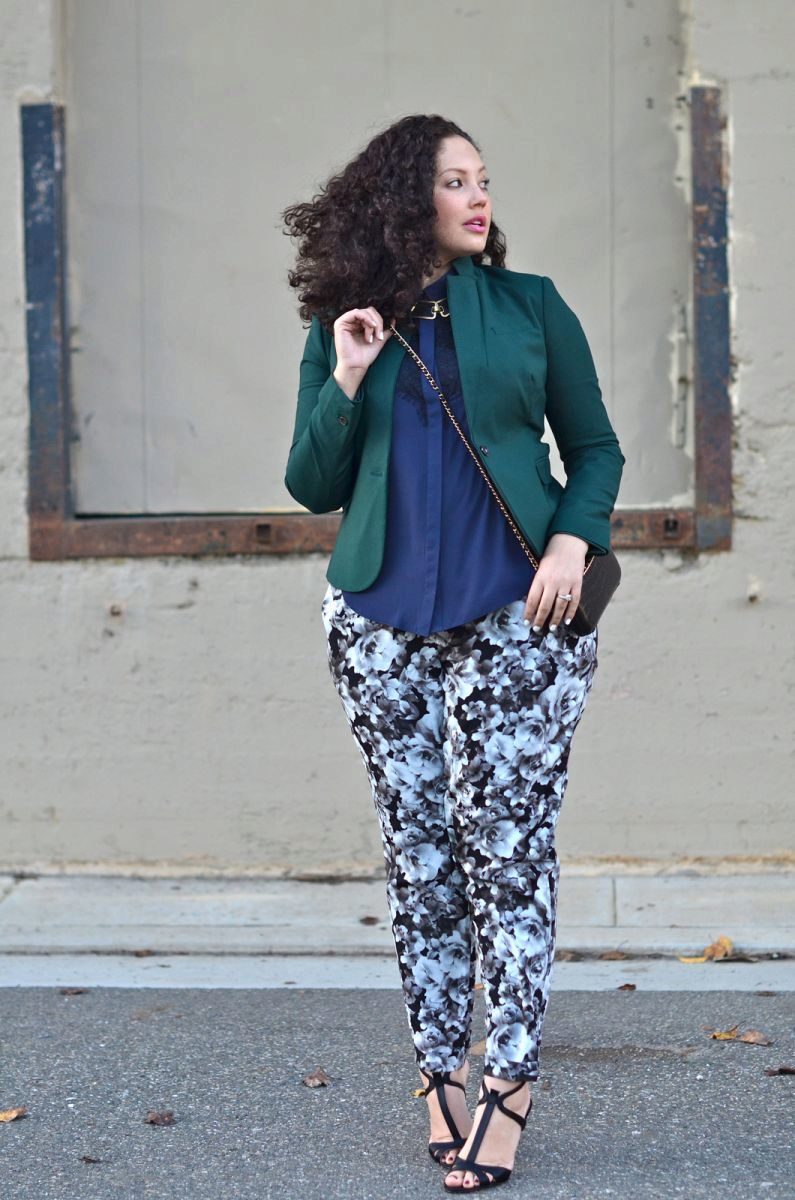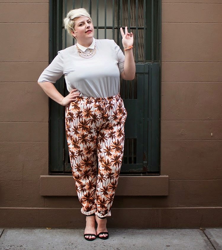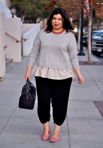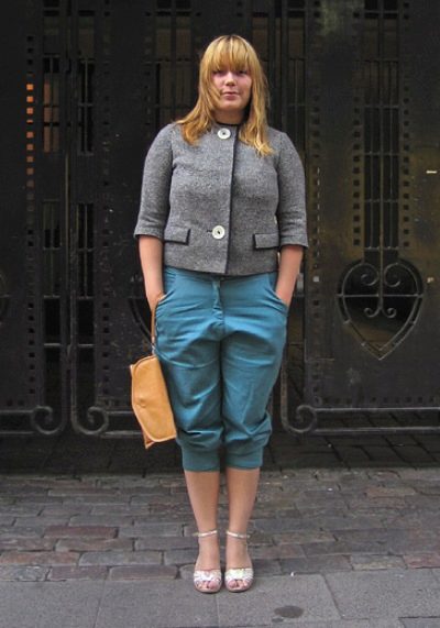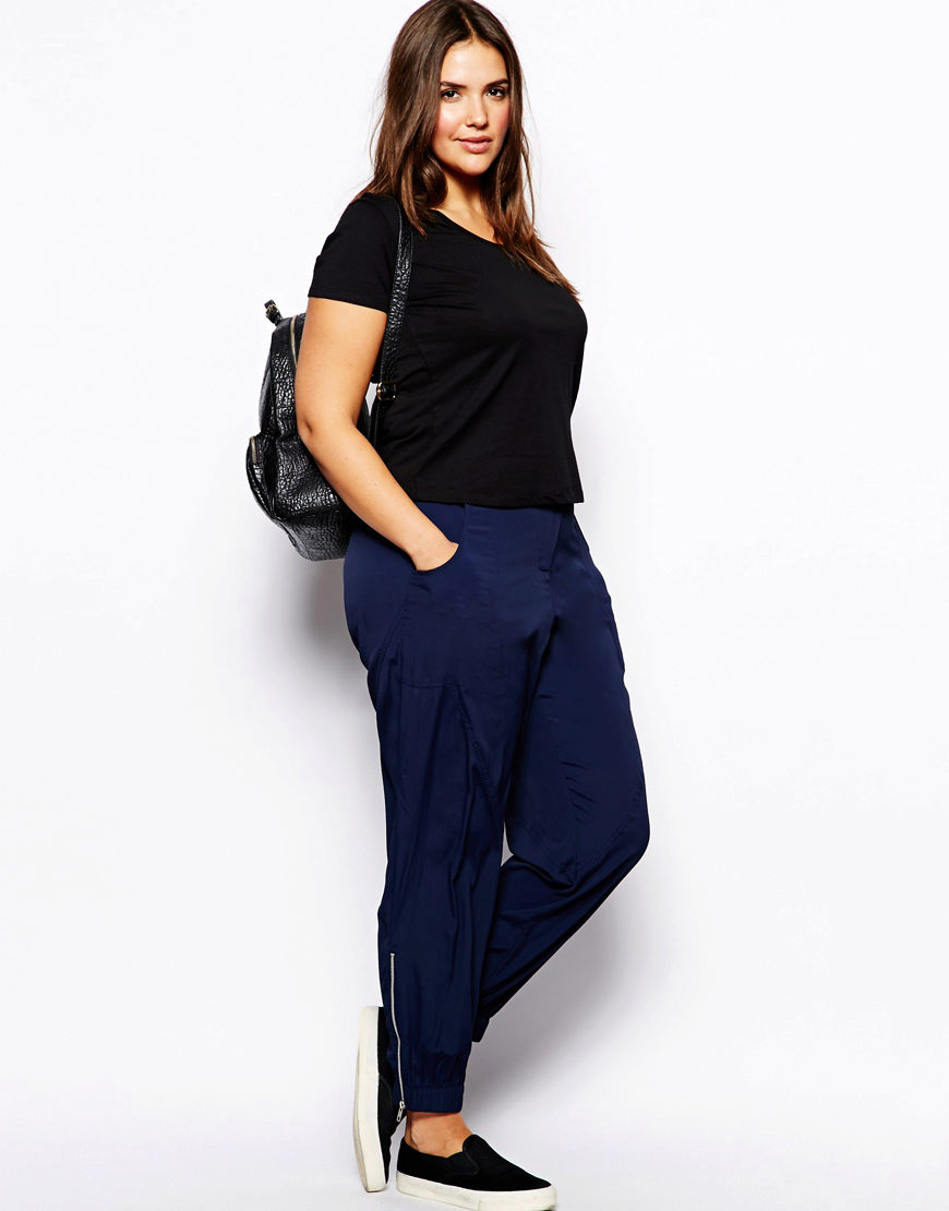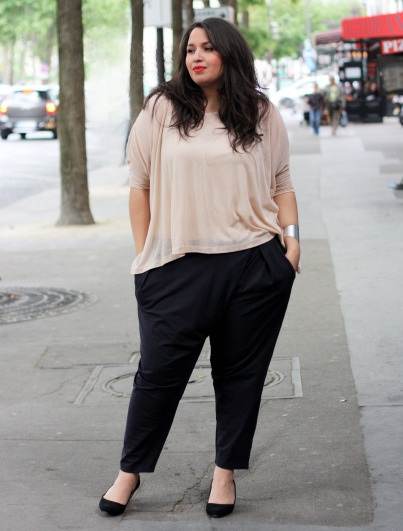 Each image is a good example of how great such pants can look on full girls, if you choose the right accompaniment for them.