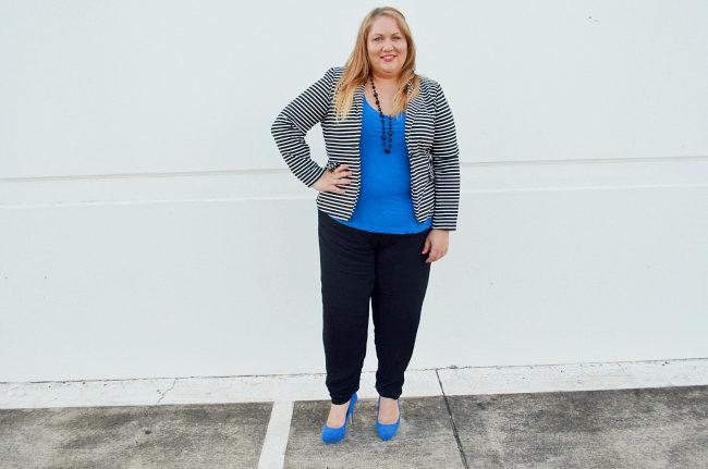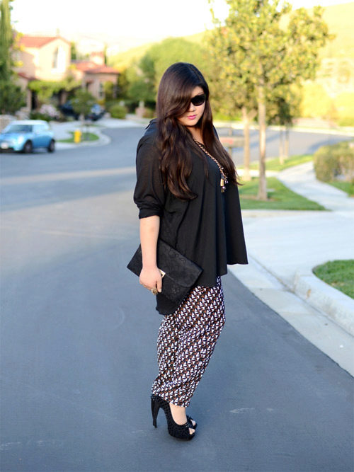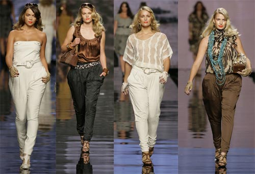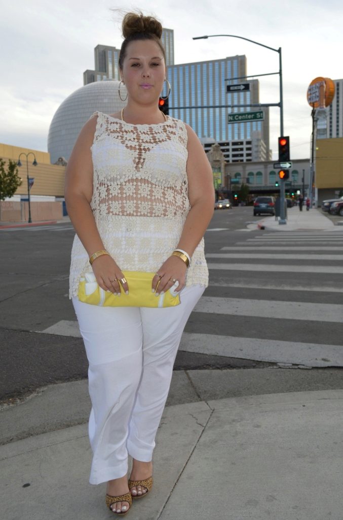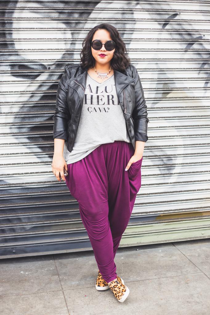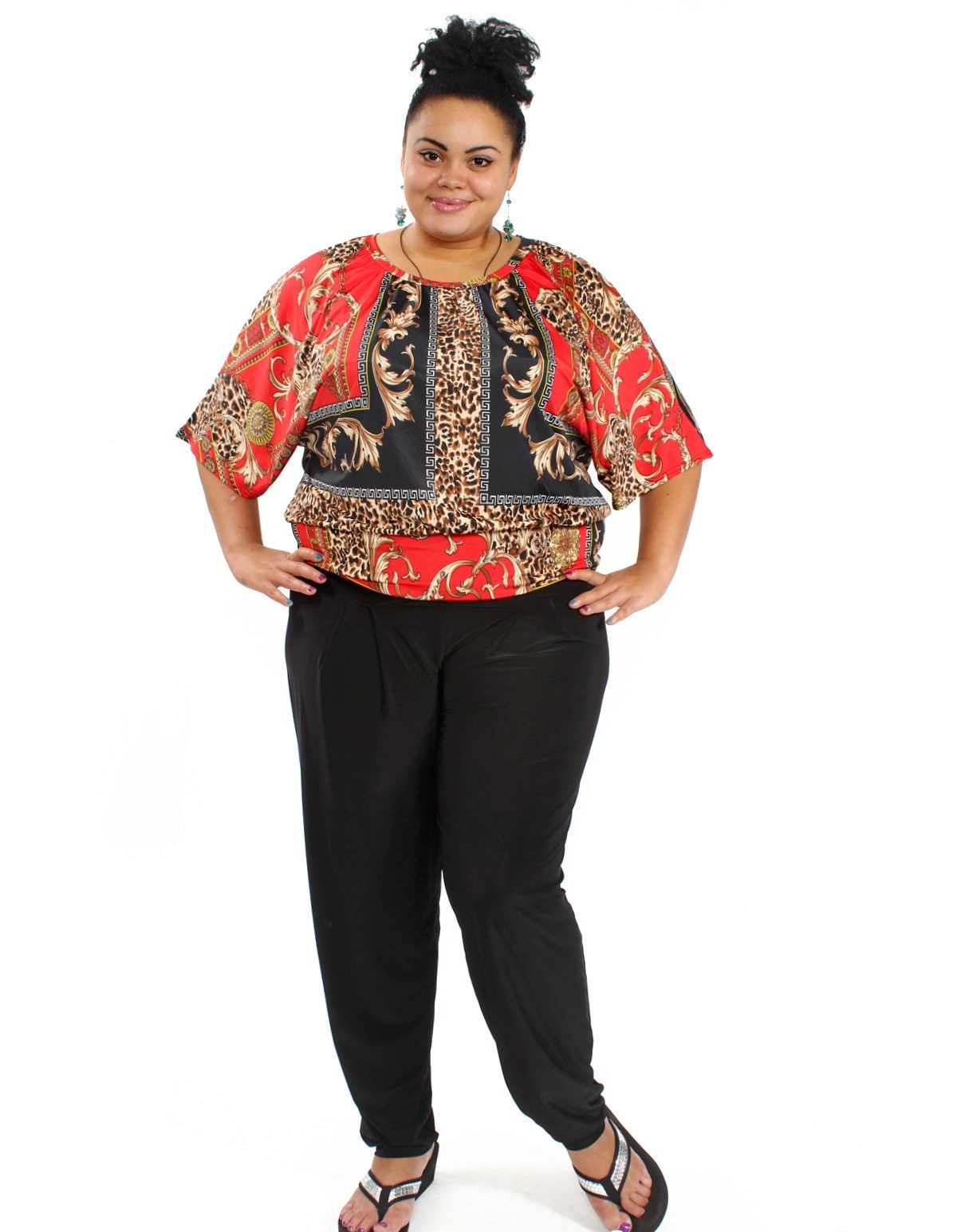 Each image is a good example of how great such pants can look on full girls, if you choose the right accompaniment for them.