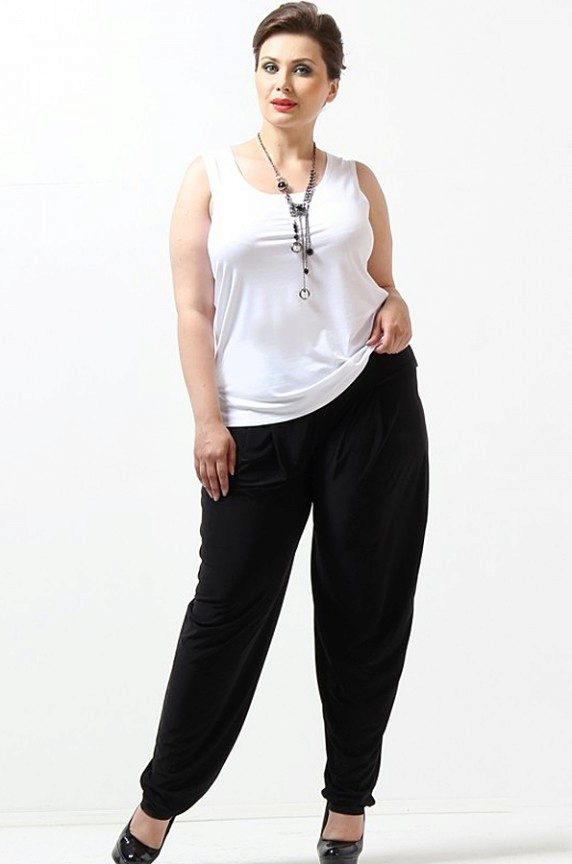 Full beauties are encouraged to choose pants with a high waist - this style visually lengthens the legs and distracts attention from the protruding tummy (which is why future moms often buy bananas).