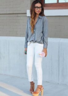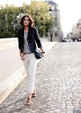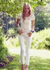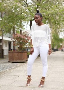 Summer skinny pants are very often made of white fabric. They emphasize a feminine and slim silhouette, give the image a special charm and freshness.