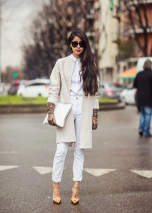 White pants - this is exactly the thing, without which not a single display of fashion collections. Previously, they were shown only on summer podiums, but now this trend has come to naught, and white models appeared in the winter and demi-season version.