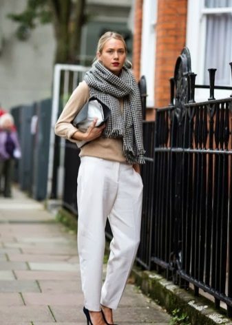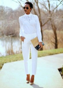 For lovers of interesting details, white is a real find, because with it you can wear a variety of jewelry and accessories. The main thing is that they are combined not only with pants, but fit into the whole ensemble, as well as fit the style of the image and the intended place of visit.