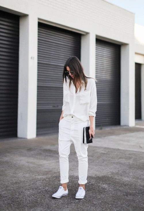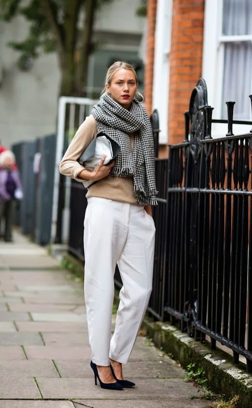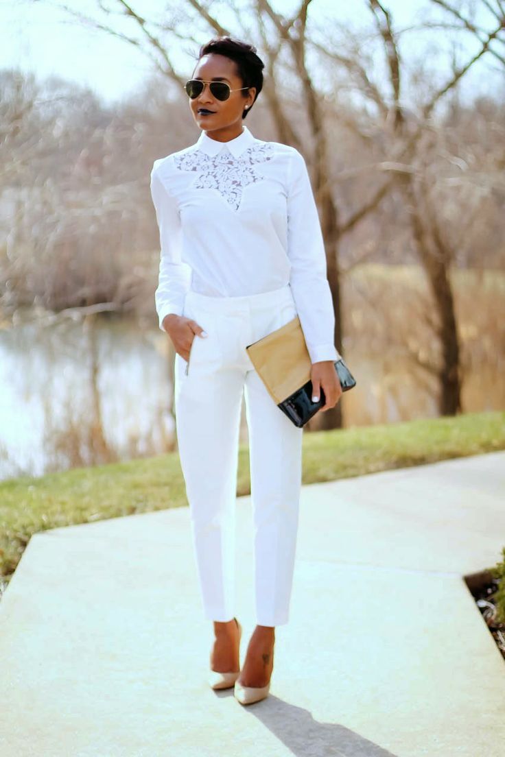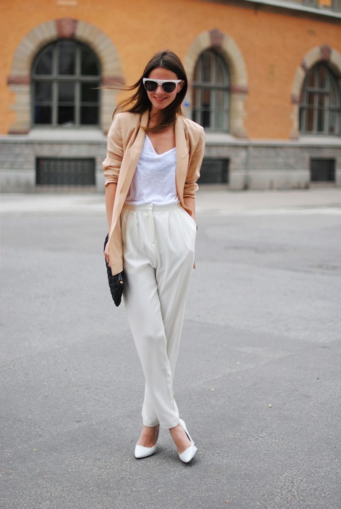 White pants are a fairly versatile piece of clothing that goes with almost any ensemble. Just like classic black trousers, they can be worn both in the office and on a date.
