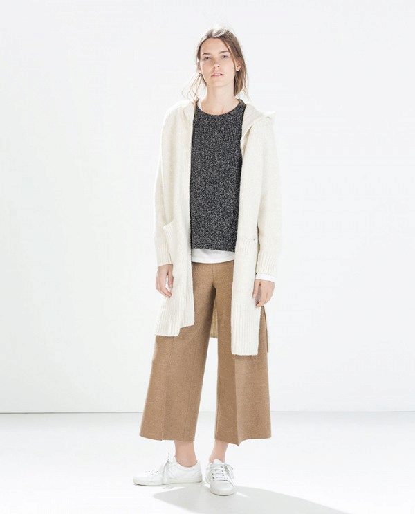 Other successful options for outerwear to beige trousers include a fur vest, bomber jacket, poncho or knitted coat.