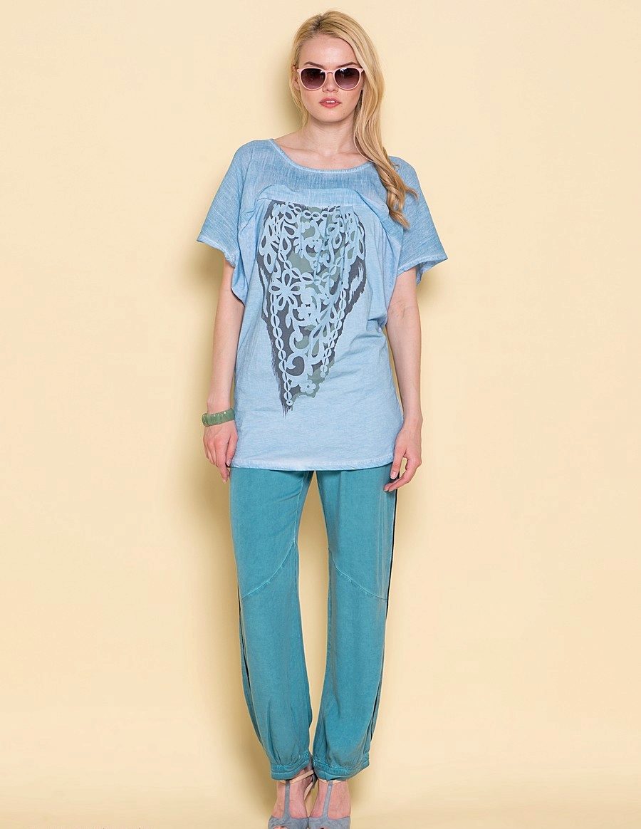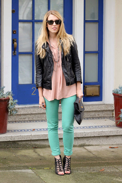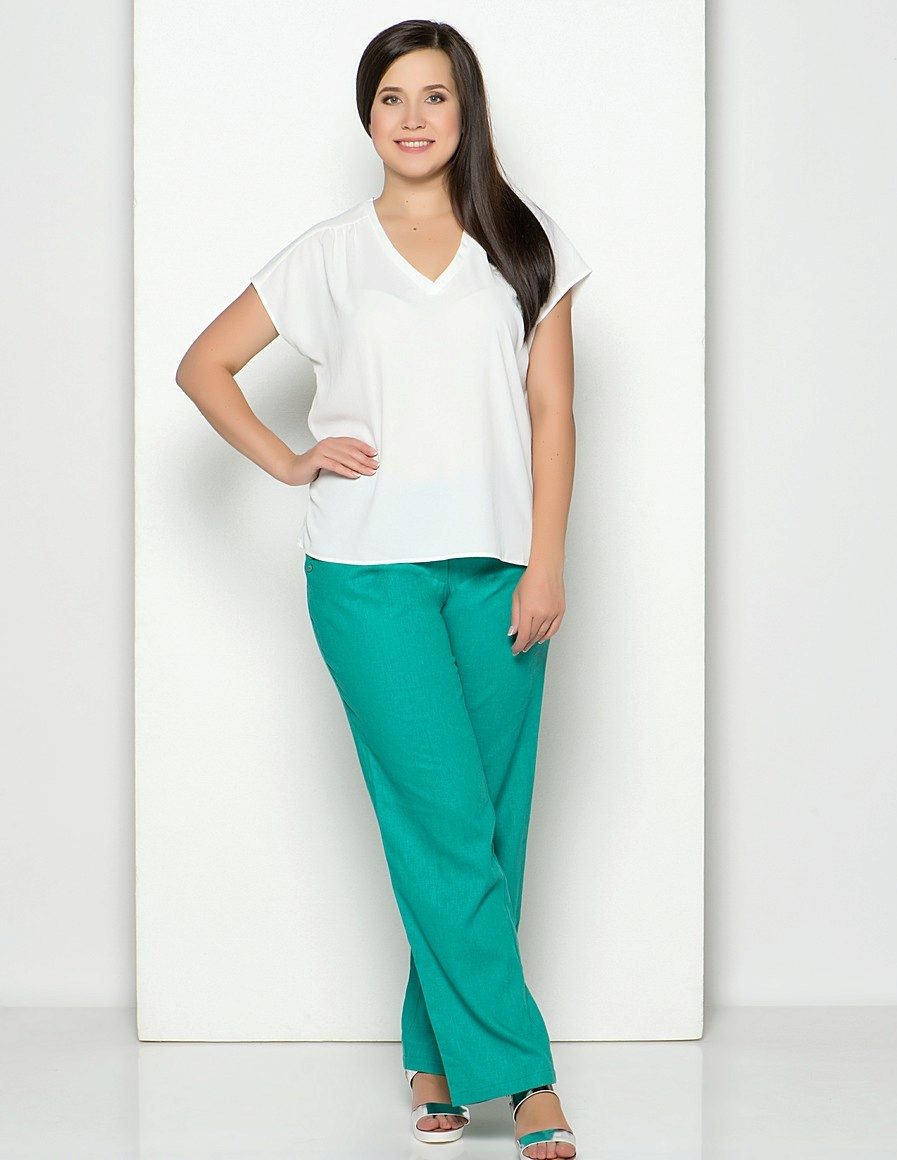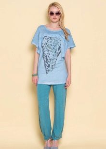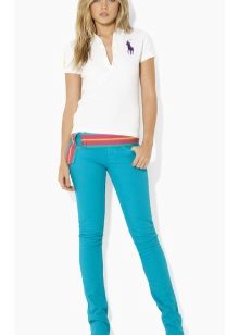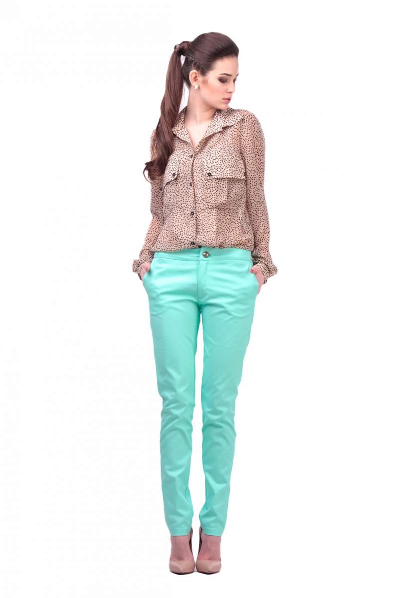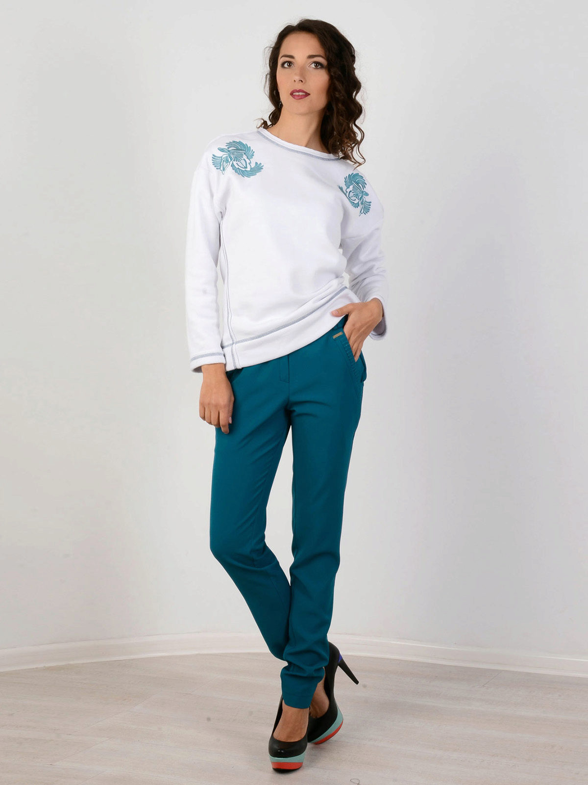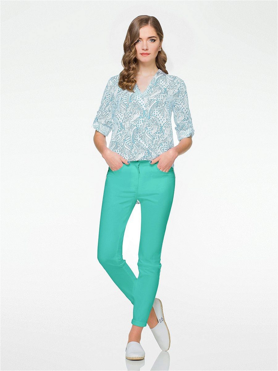 Turquoise - one of the most noble flowers. We will consider not quite the standard version of the pants - pants in turquoise color. At first glance, it may seem that this is a rather complicated element of the wardrobe for a combination. On a closer look, everything turns out to be much easier.