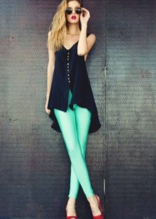Let us dwell on the combination of turquoise and blue. The basis for creating a stunning bow for a party or a bright event. Both colors are contrasted, this option for brave girls. Shoes are better to choose a classic style - sandals or high-heeled shoes.