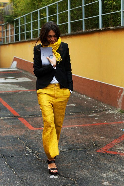- If the pants are presented in warm tones, then the top should be in the same color scheme, otherwise the silhouette will be divided into two parts.