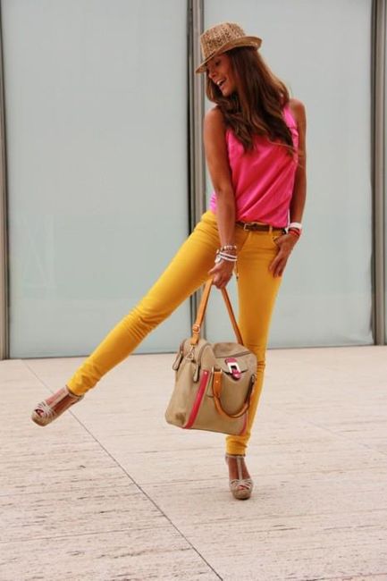 Several rules for the selection of items of clothing in tandem with colored pants: